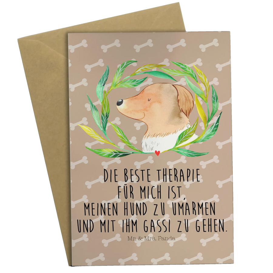 Hundehalter werden die Botschaft „Die beste Therapie für mich ist, meinen Hund zu umarmen und mit ihm Gassi zu gehen“ sofort nachvollziehen und sich über diese kleine Geste freuen. Die Grußkarte kommt mit einem edlen Umschlag, der das Gesamtbild abrundet und die Vorfreude auf das Öffnen der Karte noch steigert.