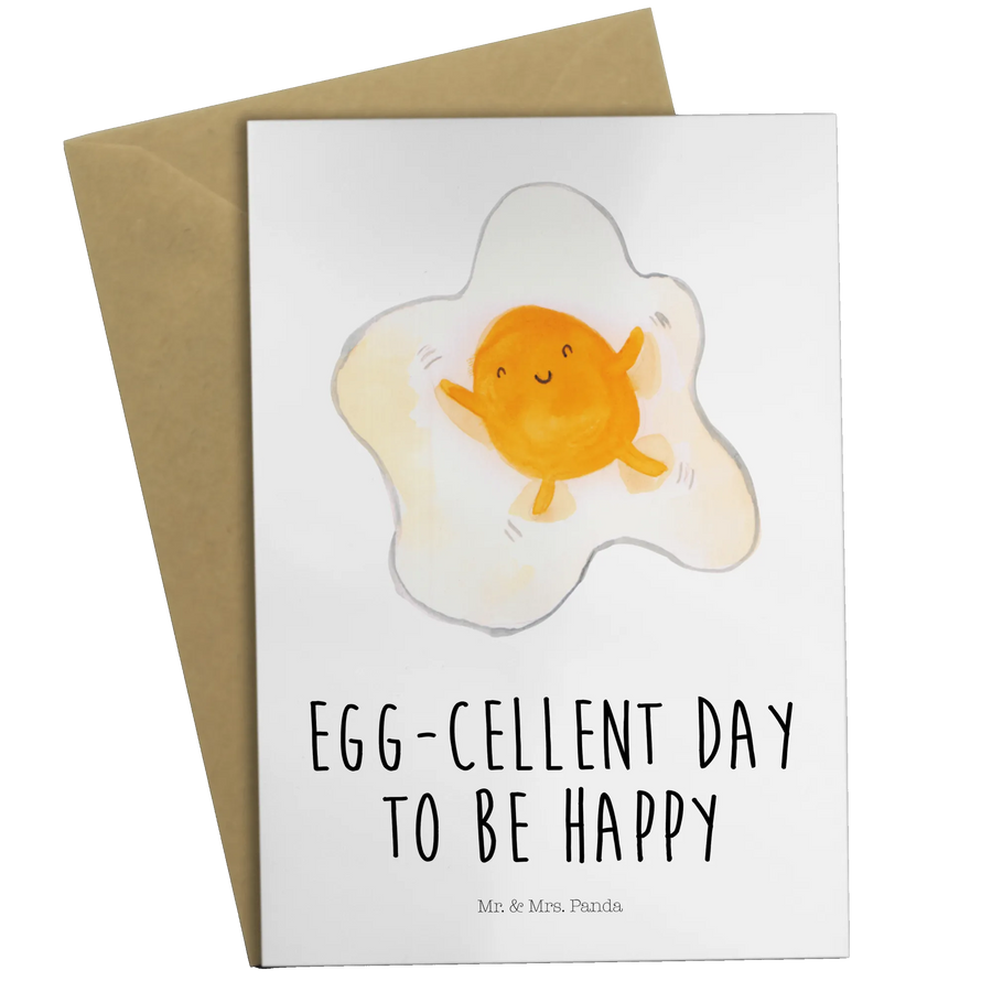 Die wundervolle Grußkarte "Egg-cellent day to be happy" von Mr. & Mrs. Panda ist das perfekte Geschenk für all jene, die das Leben mit einem Lächeln sehen. Egal, ob Du sie zur Hochzeit, zum Geburtstag oder einfach nur als kleine Freude zwischendurch verschenken möchtest, diese Karte wird garantiert Herzen höher schlagen lassen. Das süße Motiv mit dem fröhlichen Spiegelei bringt eine Portion gute Laune in jeden Briefkasten. Wer kann schon widerstehen, wenn ein bezaubernder Schneeengel in seinem eigenen Eidotter suhlt? Ein Spiegelei kann jeder braten, aber keines ist so lecker und happy wie unseres!
