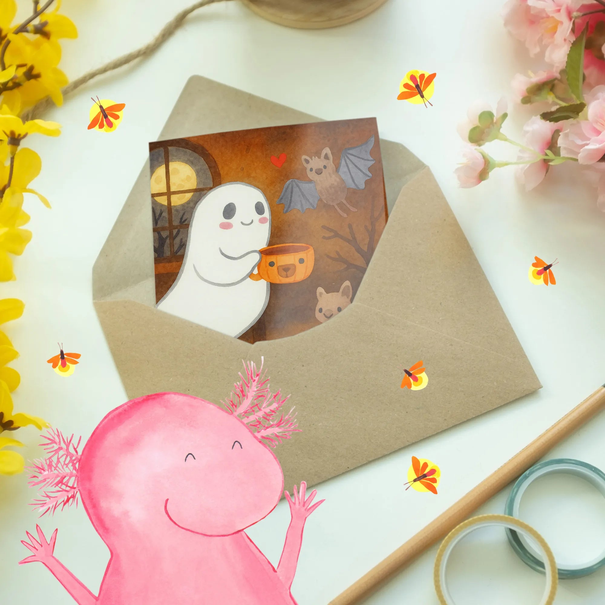 Mr. & Mrs. Panda Kaffee Gespenst – Verspieltes Motiv mit Geistertasse, Fledermaus und Herz