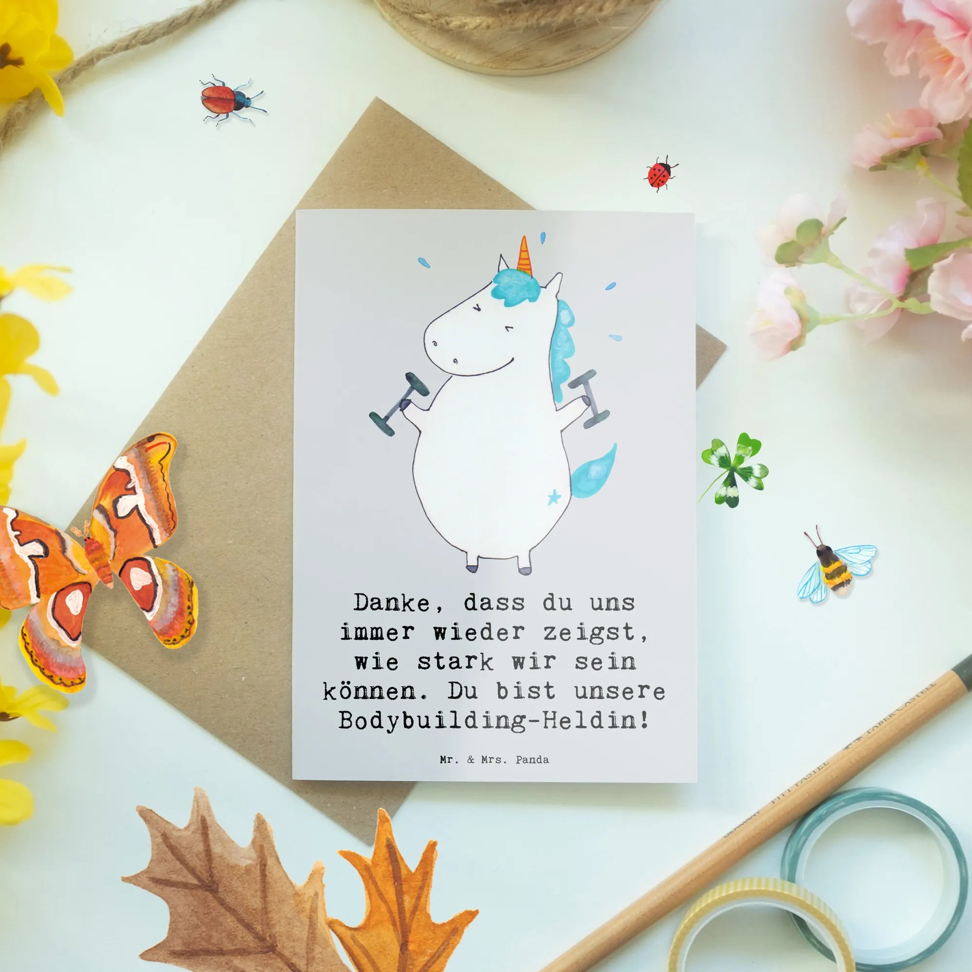 Suchst Du ein liebevolles Dankeschön für die Trainerin, die Euch immer wieder zu neuen Bestleistungen motiviert? Diese Grußkarte aus der Mr. & Mrs. Panda Kollektion „Sportarten Trainerin“ bringt genau die richtige Botschaft: „Danke, dass du uns immer wieder zeigst, wie stark wir sein können. Du bist unsere Bodybuilding-Heldin!“ 🎉