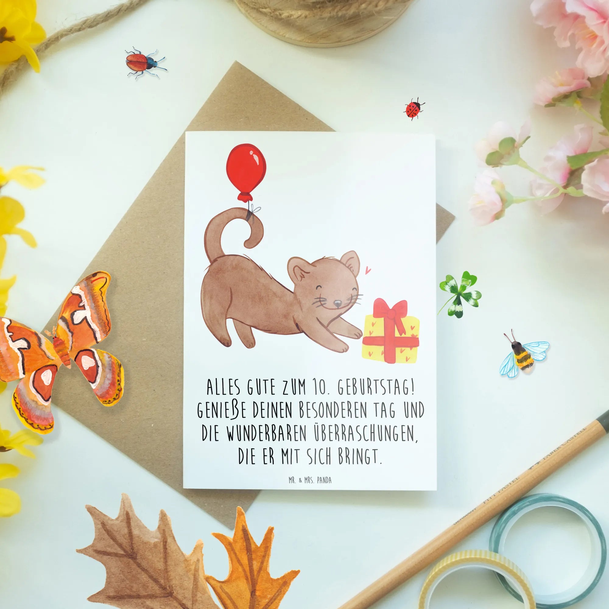 Die Grußkarte zum 10. Geburtstag von Mr. & Mrs. Panda ist das perfekte Geschenk für kleine Geburtstagskinder und ihre feiernden Freunde. Mit dem herzlichen Slogan "Alles Gute zum 10. Geburtstag! Genieße deinen besonderen Tag und die wunderbaren Überraschungen, die er mit sich bringt." ist diese Karte mehr als nur ein Stück Papier – sie ist eine liebevolle Umarmung für den besonderen Tag deines kleinen Lieblings.