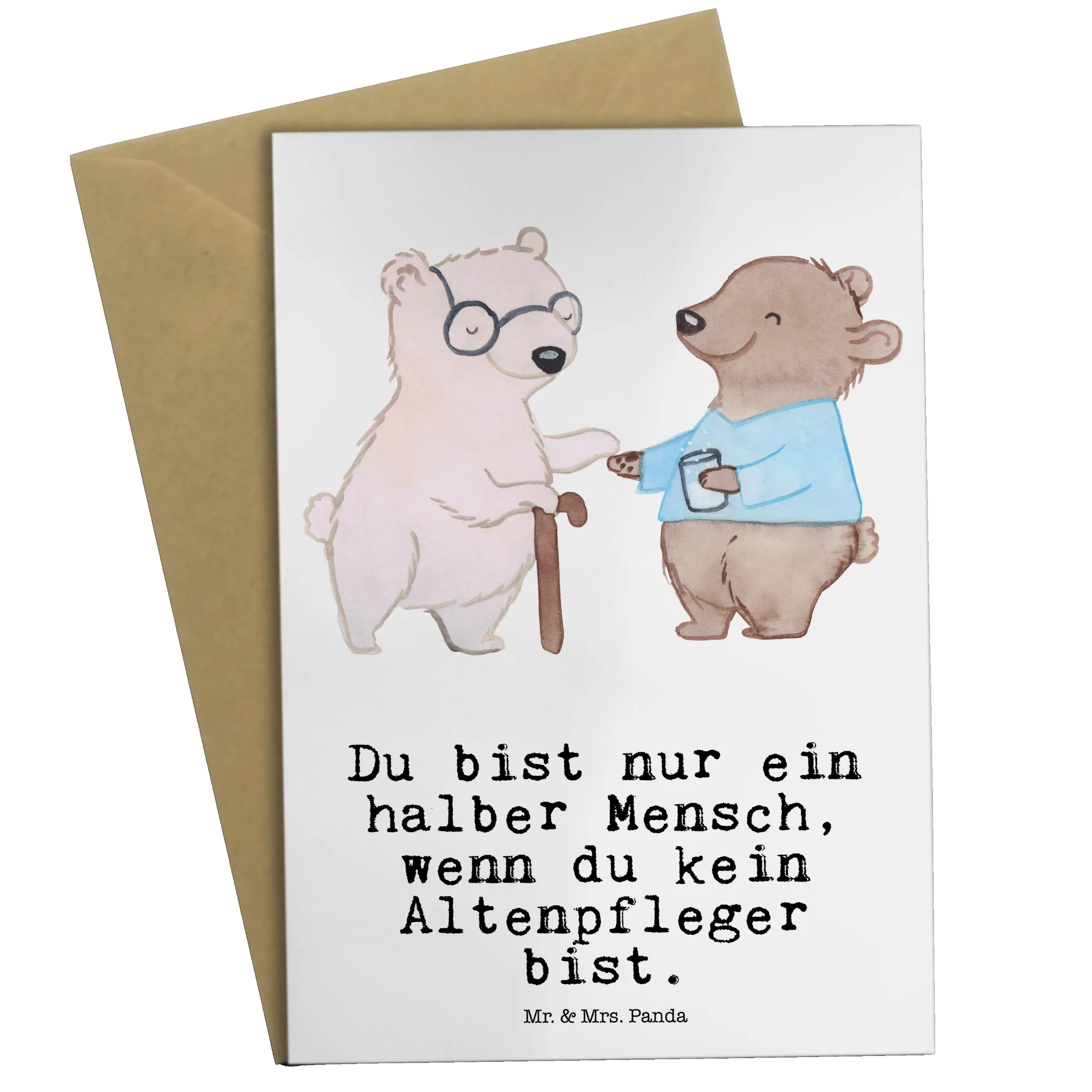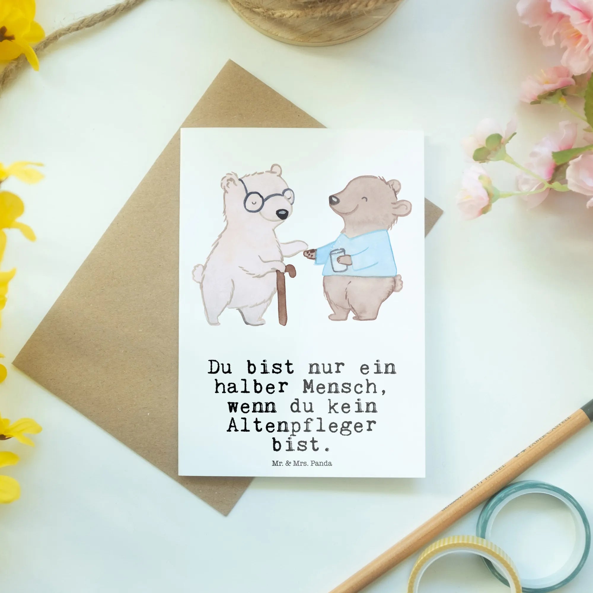 Die Mr. & Mrs. Panda-Karten sind nicht nur einfach Grußkarten, sondern kleine Kunstwerke, die mit viel Liebe zum Detail gestaltet sind. Verschenke Freude, Dankbarkeit und Anerkennung mit der "Altenpfleger mit Herz" Grußkarte und mache damit einen geliebten Menschen glücklich. Jeder Altenpfleger wird sich über diese herzensgute und einzigartige Geste freuen!