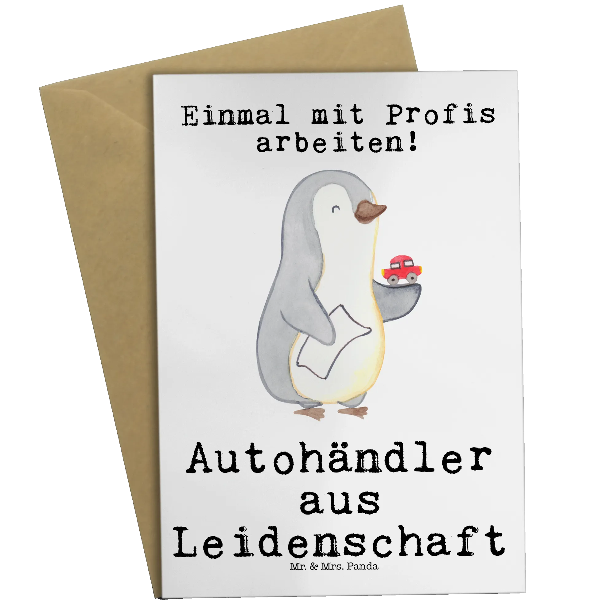 Entdecke die perfekte Grußkarte für alle Autohändler und Fahrzeugliebhaber! Die Grußkarte "Autohändler aus Leidenschaft" aus der kreativen Berufe Kollektion von Mr. & Mrs. Panda ist die richtige Wahl, um deine Wertschätzung für den Autohändler deines Vertrauens auszudrücken. Egal, ob zur Eröffnung eines Autohauses, zum Jubiläum eines Kollegen, oder einfach nur als herzliche Geste - diese Karte ist einfach super vielseitig!