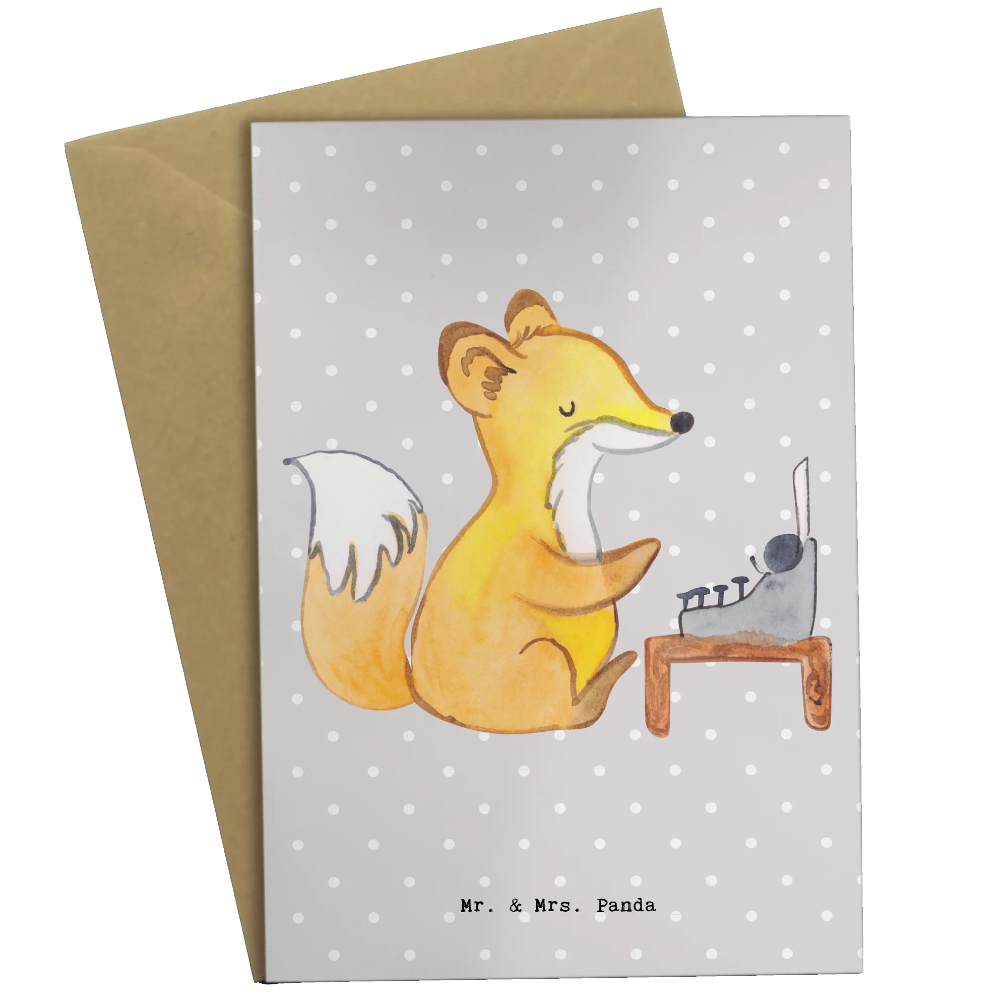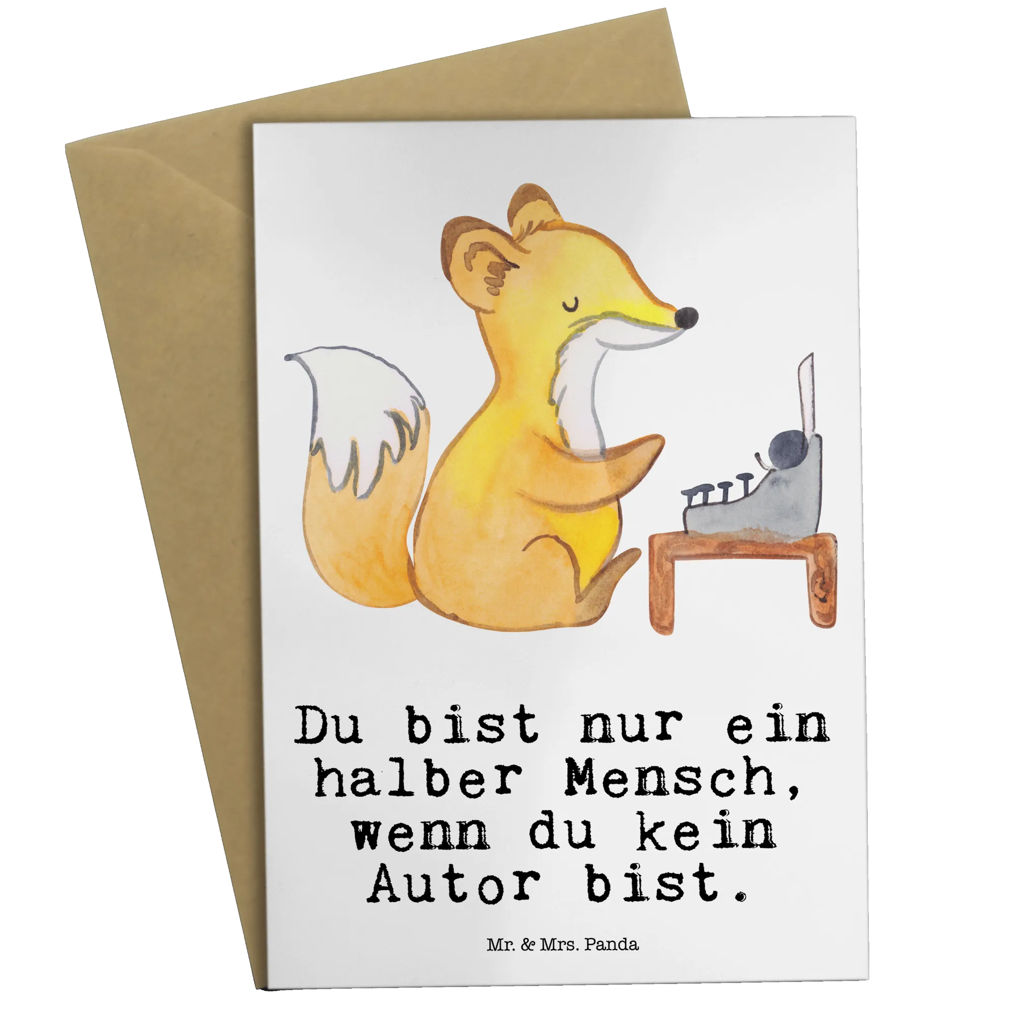 Du bist auf der Suche nach einem ganz besonderen Geschenk für einen Autor oder Schriftsteller in deinem Leben? Dann ist die Grußkarte "Autor mit Herz" aus der kreativen Berufe Kollektion von Mr. & Mrs. Panda genau das Richtige für dich! Diese einmalige Grußkarte zeichnet sich durch ihr liebevolles Design aus, das einen süßen Fuchs zeigt, der an einer Schreibmaschine sitzt und ein Buch schreibt. Dieses Motiv ist perfekt für alle, die mit Leidenschaft schreiben und ihre Kreativität auf Papier bringen. Wenn du einen Aufmunterungsgruß oder ein Dankeschön für einen Kollegen, Freund oder Verwandten suchst, wird diese Karte mit Sicherheit ein Lächeln auf ihr Gesicht zaubern.