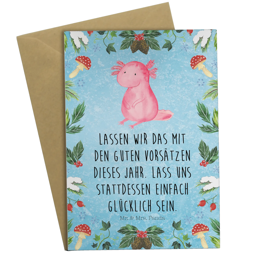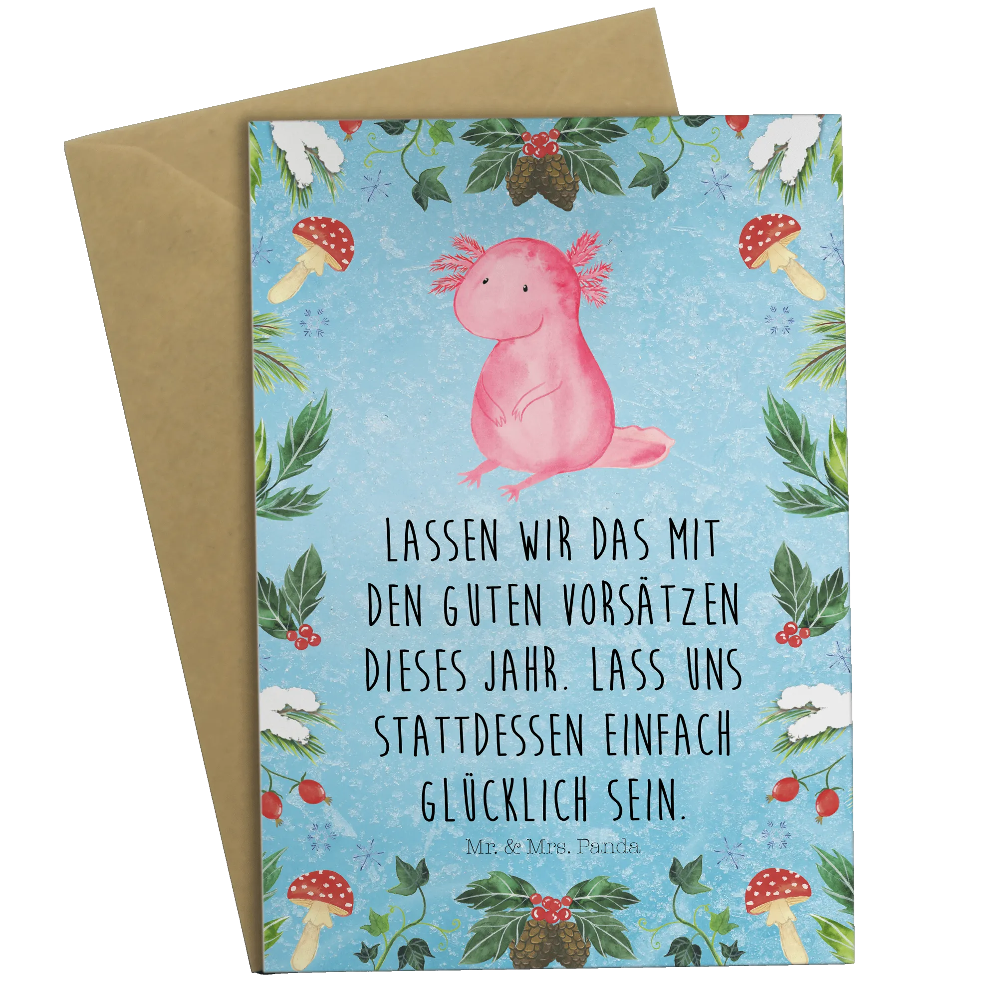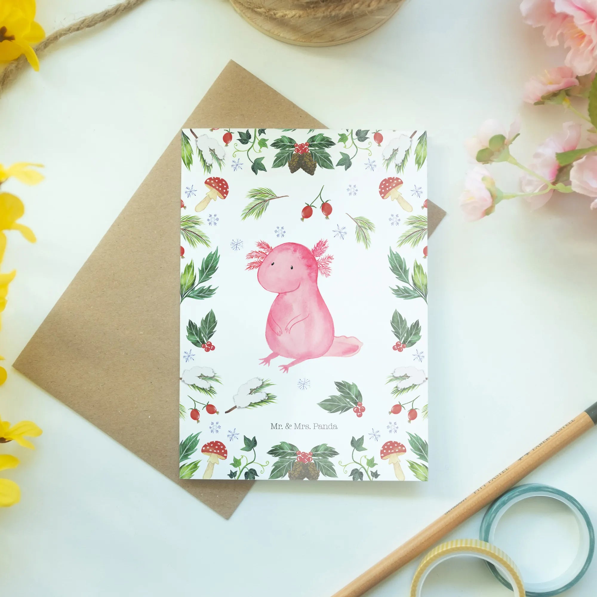 Die wunderschöne Grußkarte mit dem glücklichen Axolotl aus unserer Winter Kollektion von Mr. & Mrs. Panda ist das perfekte Geschenk für jeden Anlass.