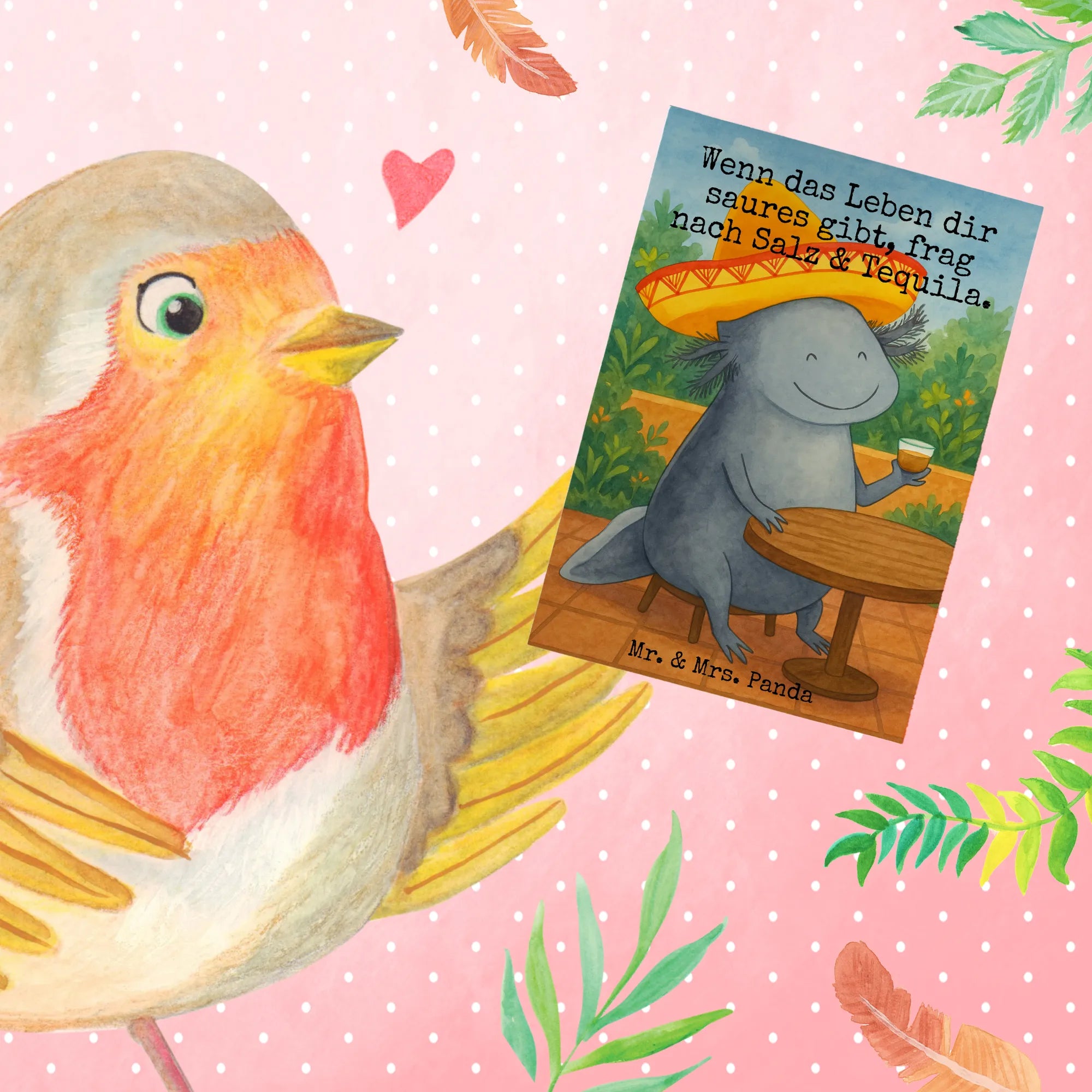Grußkarte Axolotl Tequila Design – Mr. & Mrs. Panda