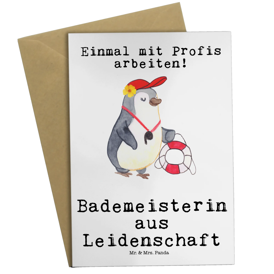 Suchst du nach der perfekten Grußkarte für eine Bademeisterin, die ihre Leidenschaft für den Beruf liebt? Dann ist die "Bademeisterin aus Leidenschaft" von Mr. & Mrs. Panda genau das Richtige!