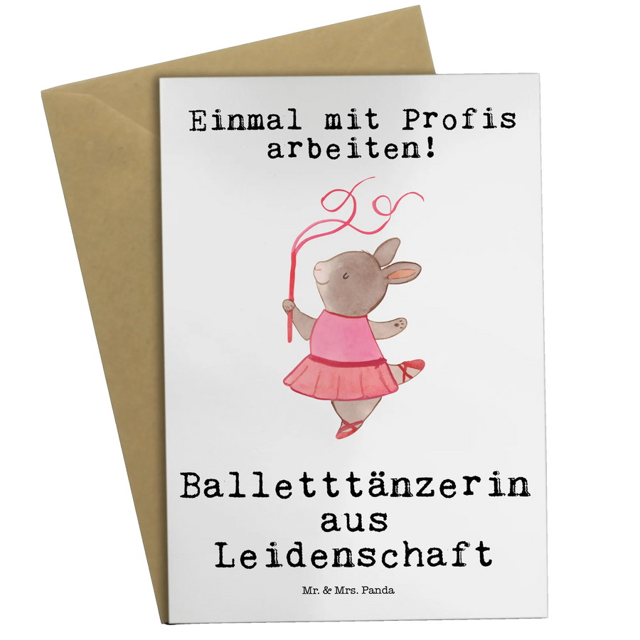 Entdecke die zauberhafte Grußkarte "Balletttänzerin aus Leidenschaft" von Mr. & Mrs. Panda! Diese einzigartige Klappkarte ist nicht nur ein wunderschöner Blickfang, sondern auch ein perfekter Glücksbringer für alle Balletttänzerinnen und Tanzliebhaber.