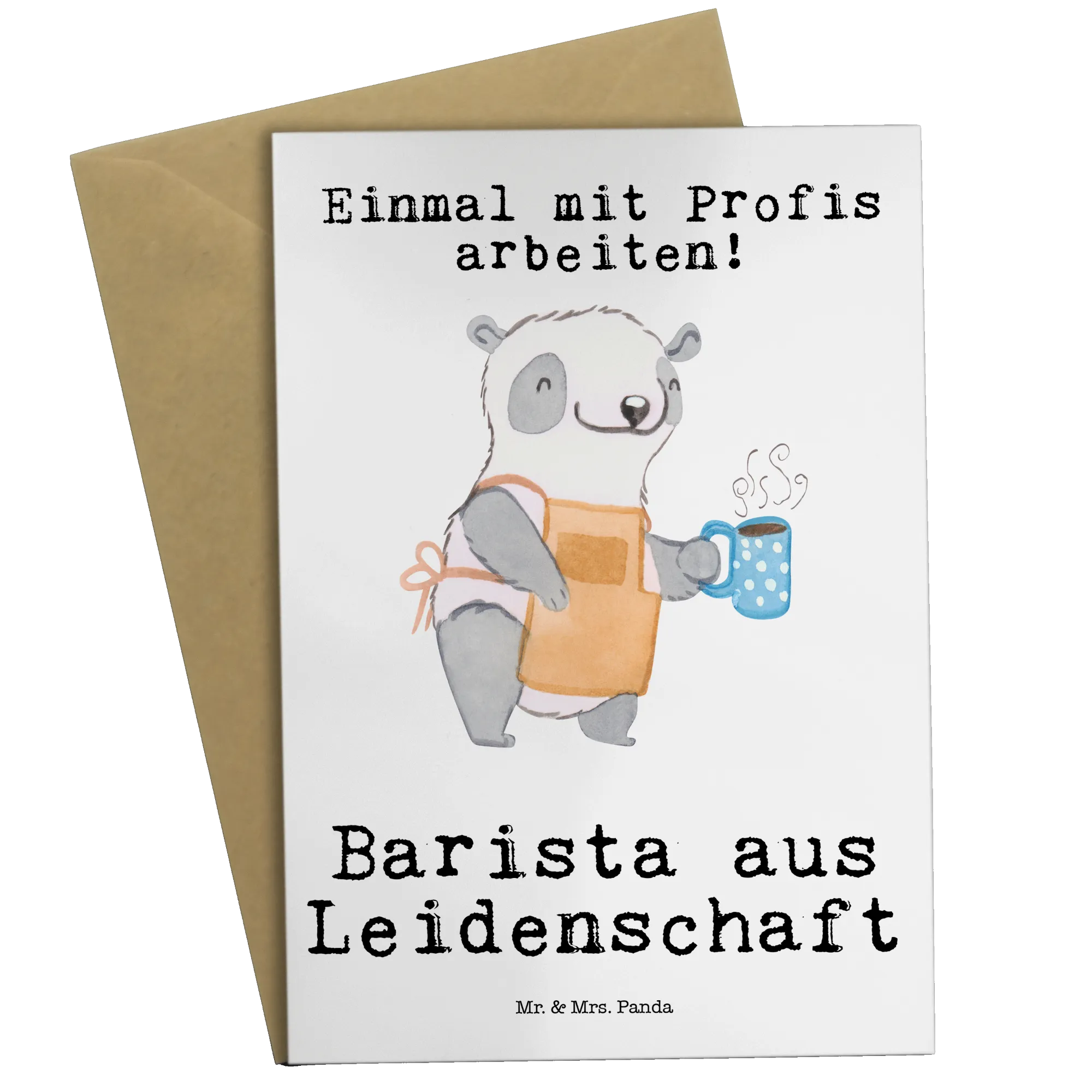 Die Grußkarte "Barista aus Leidenschaft" von Mr. & Mrs. Panda ist das perfekte Geschenk für alle, die das Kaffeevergnügen lieben und stolz auf ihren Beruf als Barista sind. Diese liebevoll gestaltete Klappkarte ist nicht nur ein fettes Dankeschön an einen Kollegen oder eine Kollegin, sondern auch eine wunderbare Möglichkeit, um besonderen Augenblicken Ausdruck zu verleihen.