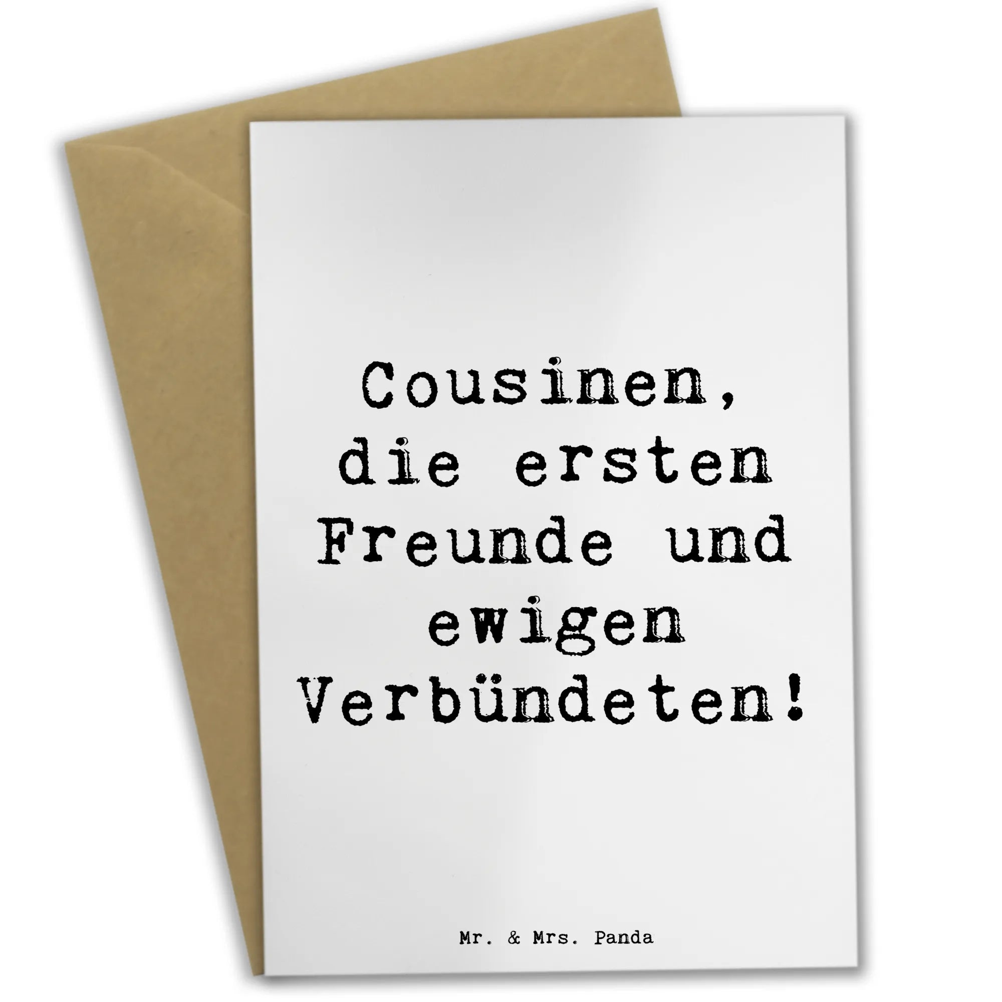 Entdecke die zauberhafte Grußkarte für deine liebste Cousine aus der Familie & Verwandte Kollektion von Mr. & Mrs. Panda. Diese einzigartige Karte ist nicht nur ein einfacher Gruß, sondern ein wundervolles Geschenk, um die besondere Bindung zu deiner Cousine zu feiern.