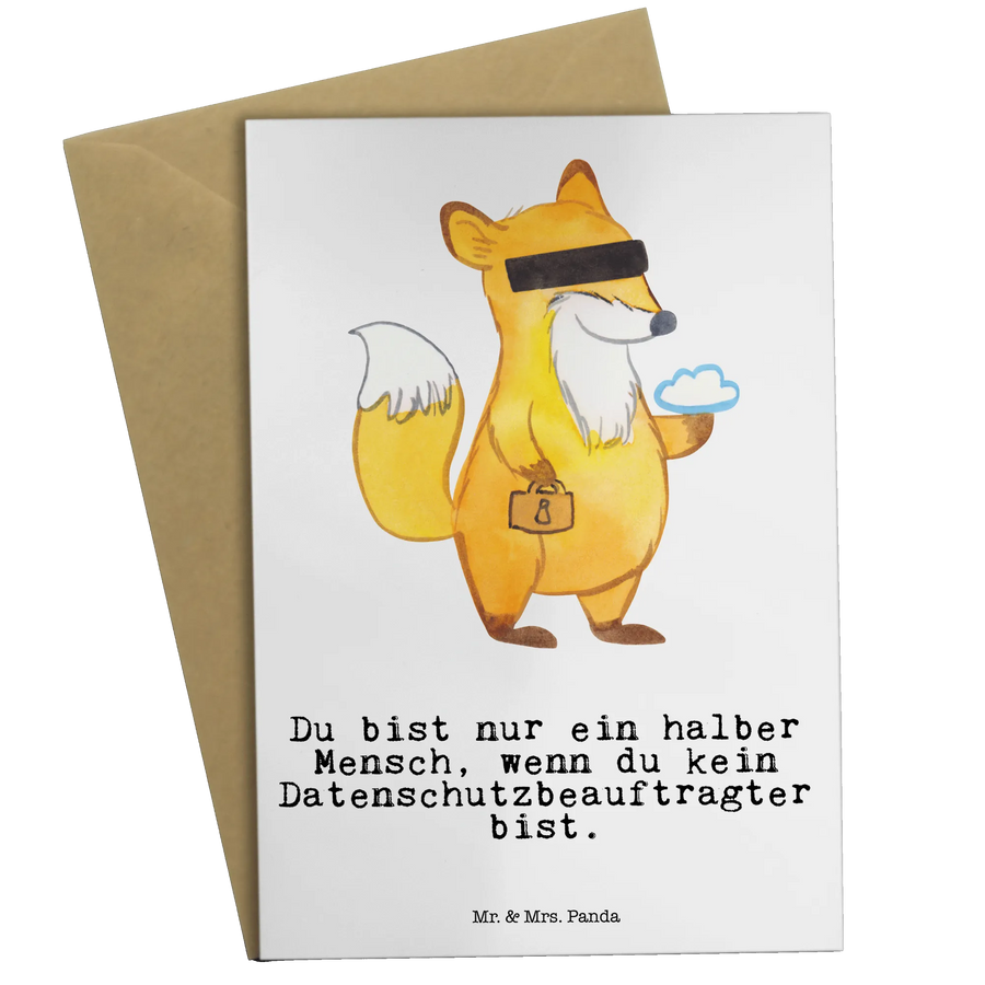 Wenn du jemandem eine Freude machen möchtest, ist diese Karte genau das Richtige! Das niedliche Design mit einem Fuchs, der für Anonymität und Sicherheit steht, ist nicht nur ein echter Hingucker, sondern vermittelt auch Wertschätzung für die Arbeit eines Datenschutzbeauftragten. Der Spruch "Du bist nur ein halber Mensch, wenn du kein Datenschutzbeauftragter bist" sorgt für ein Schmunzeln und macht die Karte unvergesslich.
