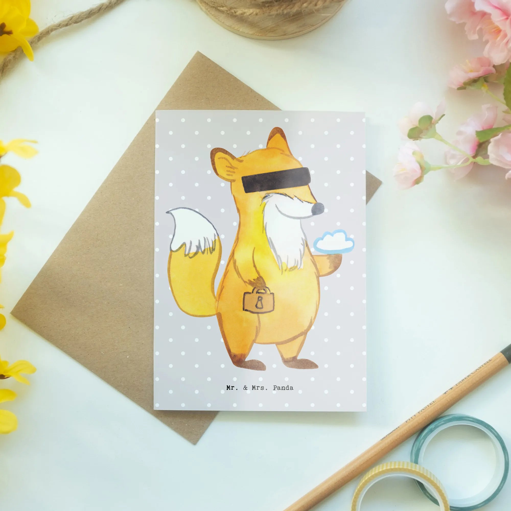 Die wunderschöne Grußkarte "Datenschutzbeauftragter mit Herz" aus der kreativen Berufe-Kollektion von Mr. & Mrs. Panda ist das perfekte Geschenk für jeden, der sich für Datenschutz und Anonymität einsetzt. Mit ihrem einzigartigen Motiv und dem charmanten Fuchs, der den Schutz von Daten in seiner Firma ernst nimmt, sorgt diese Karte für ein Lächeln im Büro oder bei der nächsten Jubiläumsfeier.