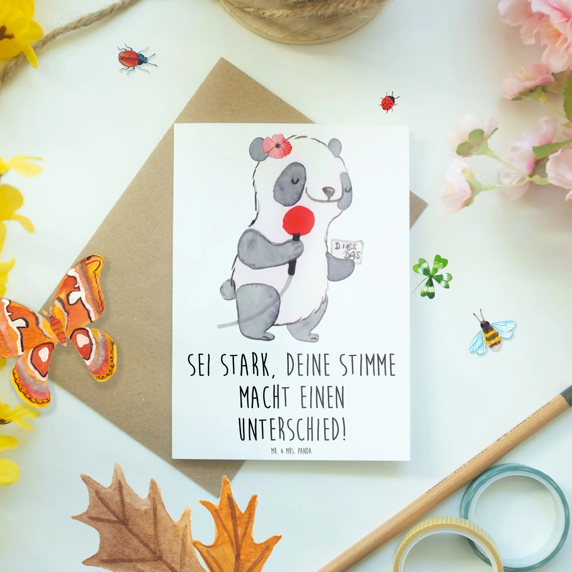 Die Grußkarte "Mutig zu seinen Meinungen stehen" von Mr. & Mrs. Panda ist das perfekte Geschenk für alle, die sich gerne ausdrücken und ihre Gedanken teilen möchten. Diese wunderschöne Karte stammt aus unserer besonderen Kollektion "Mutmacher" und trägt den inspirierenden Slogan "Sei stark, deine Stimme macht einen Unterschied!". Egal ob für Freunde, Familienmitglieder oder Kollegen – diese Karte ist ideal, um Mut zu machen und Unterstützung zu zeigen.