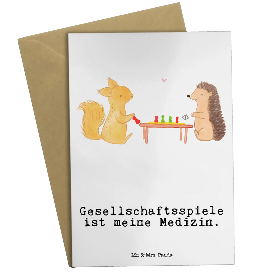 Das edle Umschlag ist einfach das Sahnehäubchen und macht das Gesamtbild komplett. Verschenke Freude, Glück und die Liebe zum Spiel – mit der Grußkarte „Eichhörnchen Gesellschaftsspiele Medizin“ von Mr. & Mrs. Panda!