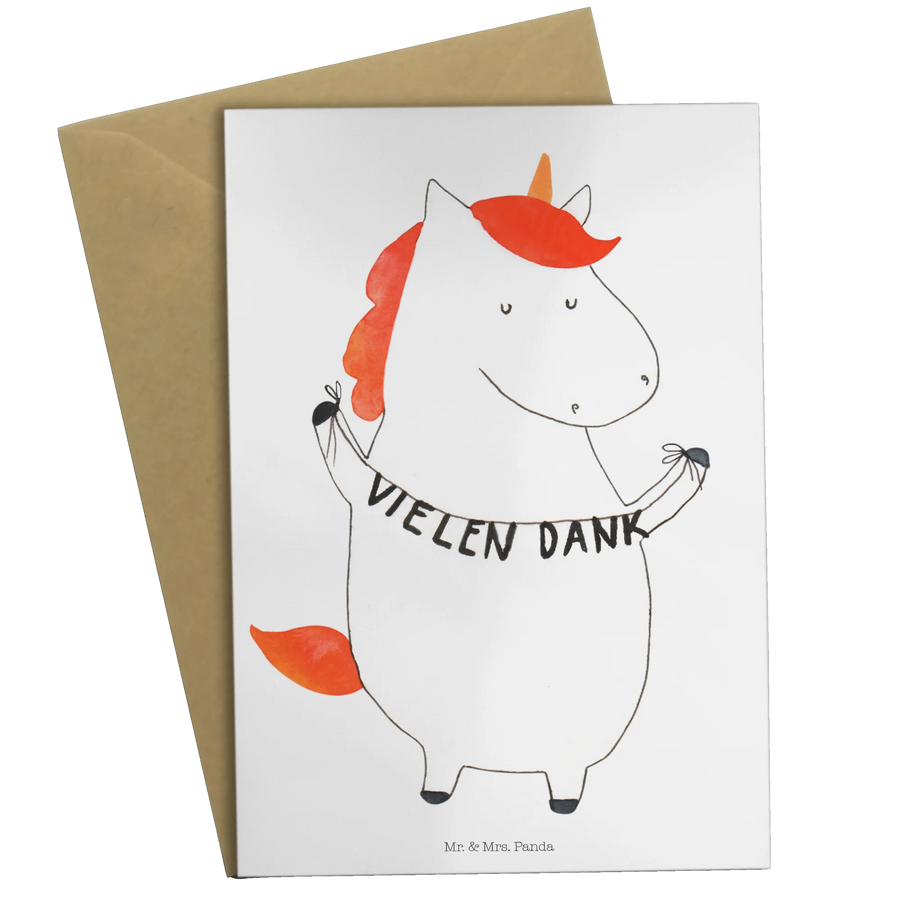 Die zauberhafte Grußkarte "Einhorn Vielen Dank" aus der einzigartigen Einhorn-Kollektion von Mr. & Mrs. Panda ist das perfekte Geschenk für all jene, die auf liebevolle und kreative Weise "Danke" sagen möchten.