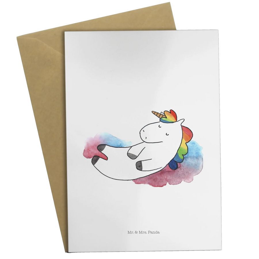 Die wunderschöne Grußkarte "Einhorn Wolke 7" aus der beliebten Einhorn-Kollektion von Mr. & Mrs. Panda ist das perfekte Geschenk für jeden, der ein Lächeln zaubern möchte. Egal ob zum Geburtstag, zur Hochzeit oder einfach nur für eine liebevolle Nachricht zwischendurch, diese Karte passt einfach immer!