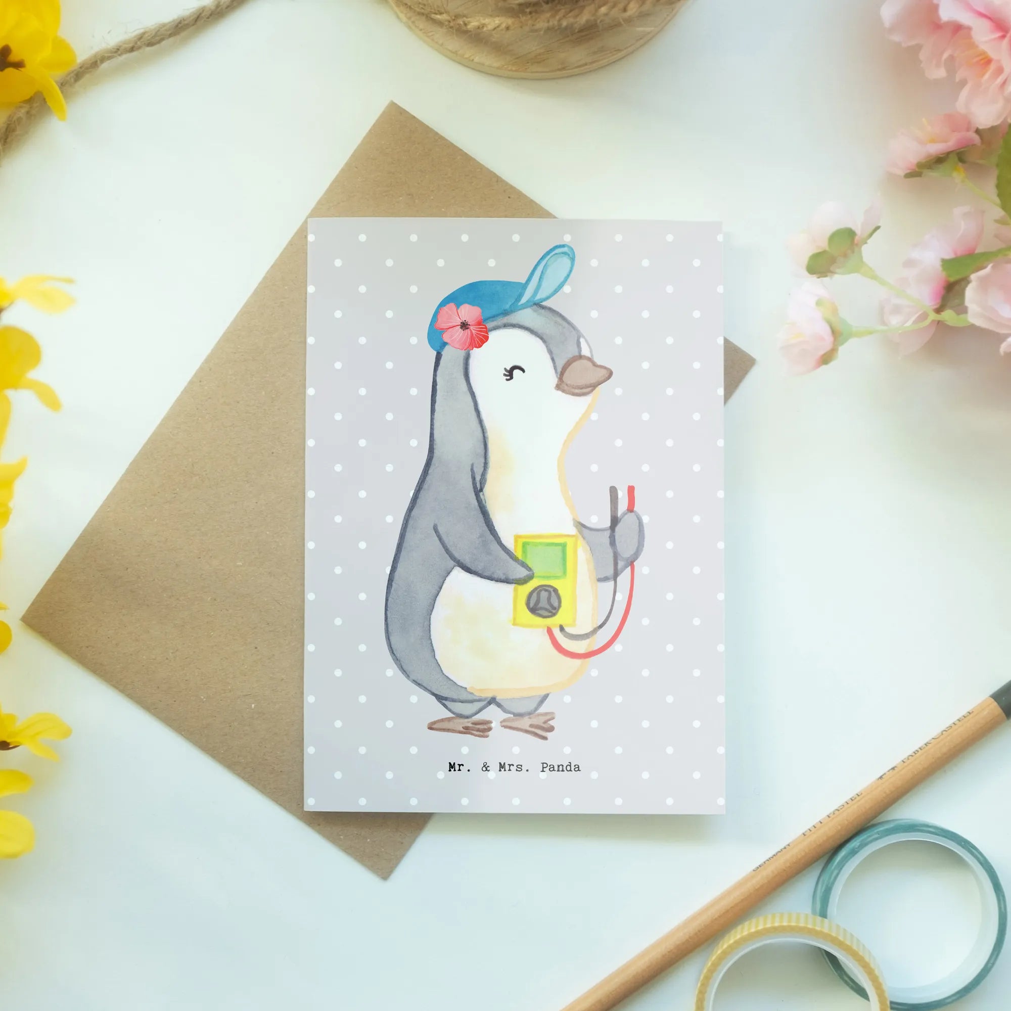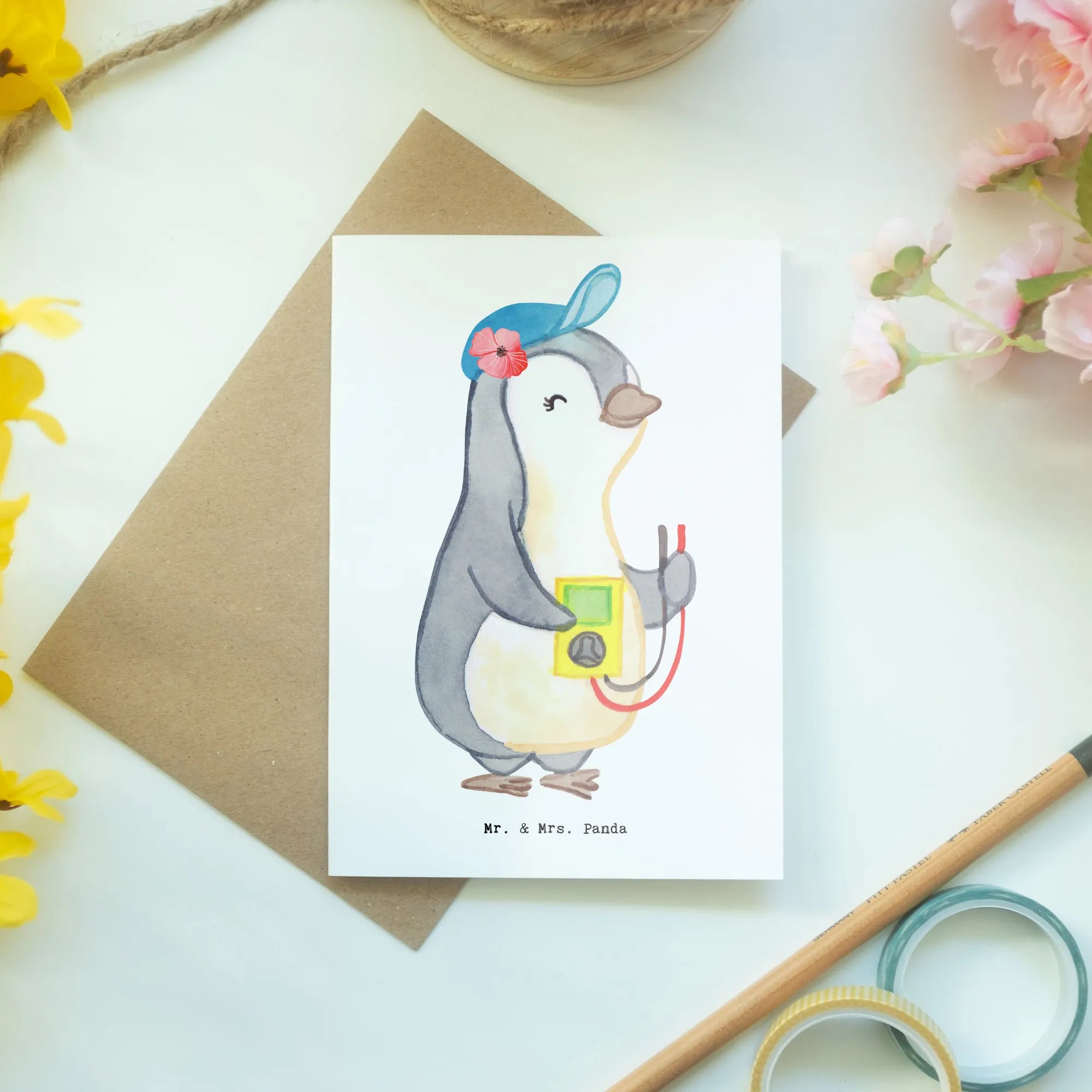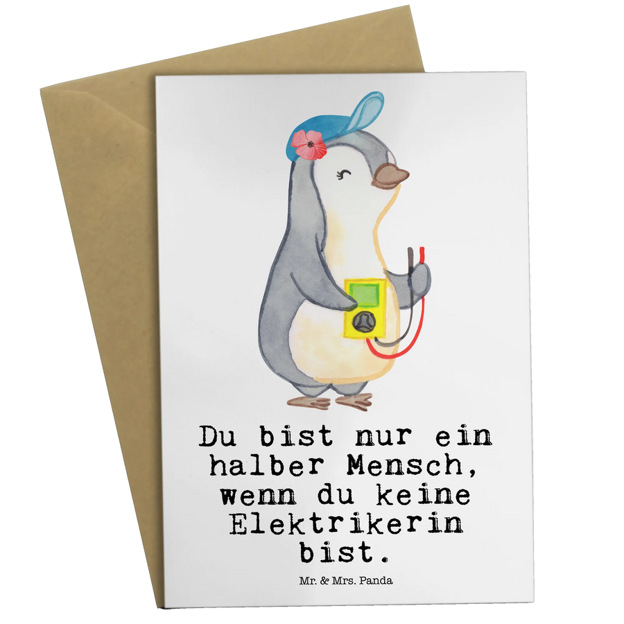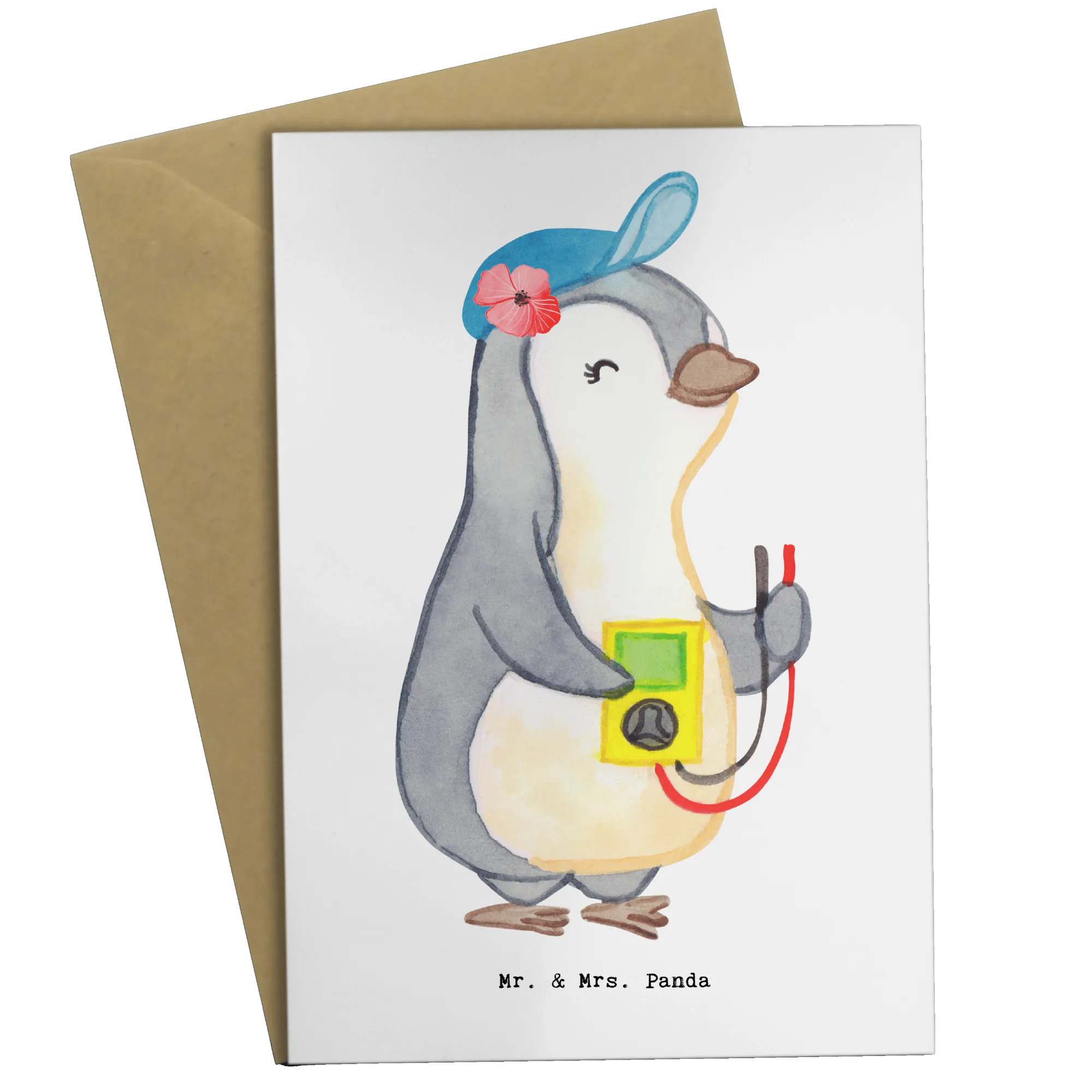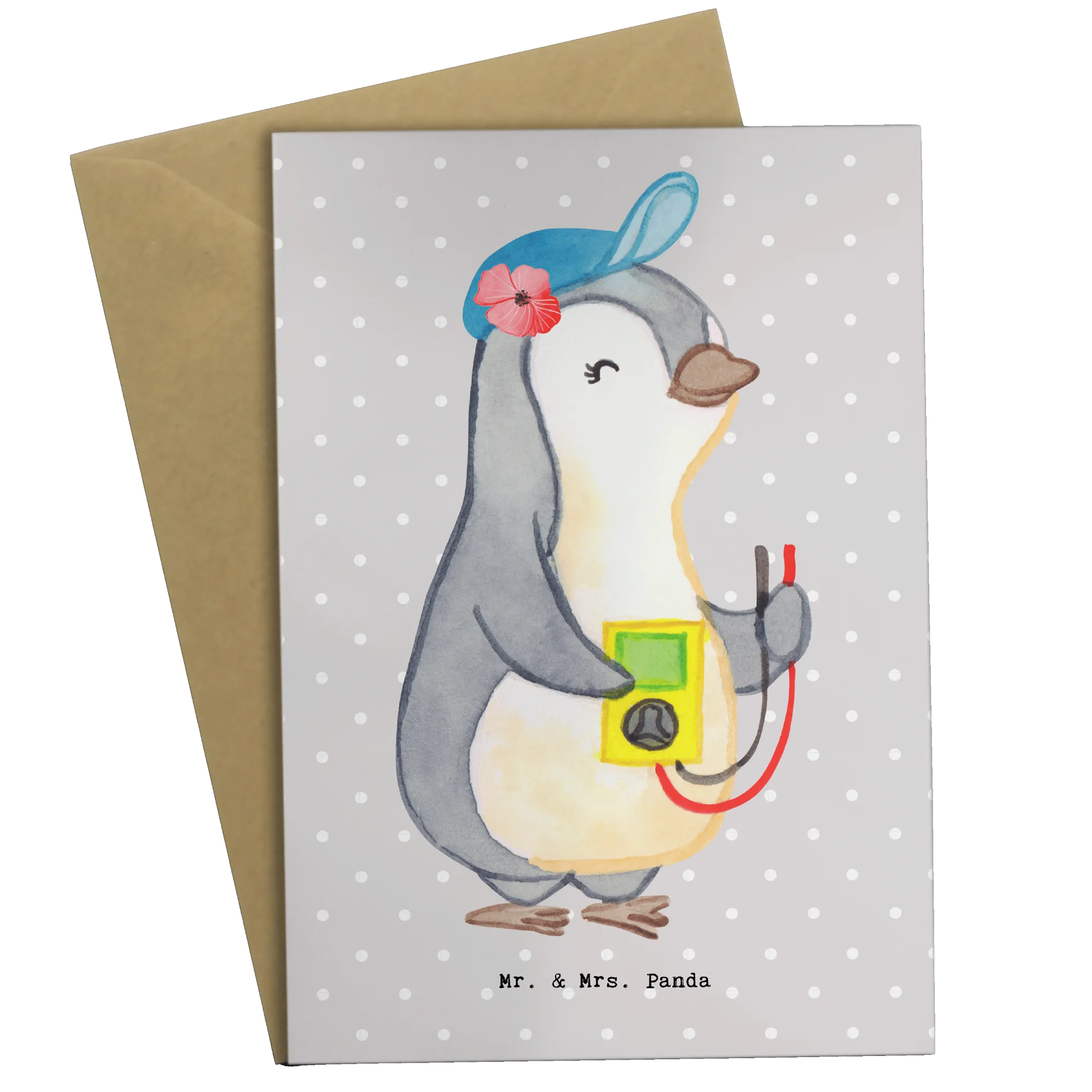 Entdecke die bezaubernde Grußkarte "Elektrikerin mit Herz" von Mr. & Mrs. Panda!