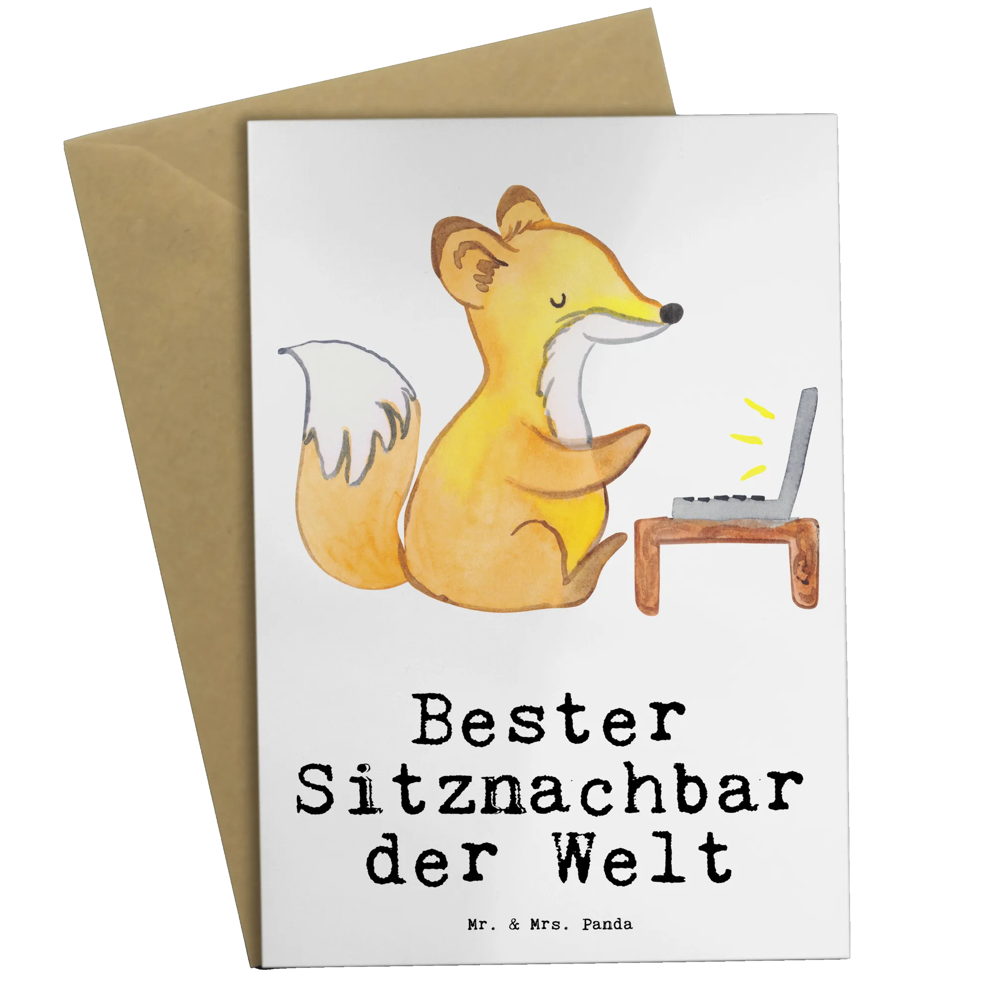 Die Grußkarte "Bester Sitznachbar der Welt" mit einem niedlichen Fuchs von Mr. & Mrs. Panda ist das ideale Geschenk für jeden, der seinen Sitznachbarn auf liebevolle Art und Weise danken möchte. Egal ob du in der Uni, an einer Hochschule oder in der Schule bist, diese Karte lässt die Herzen höher schlagen!