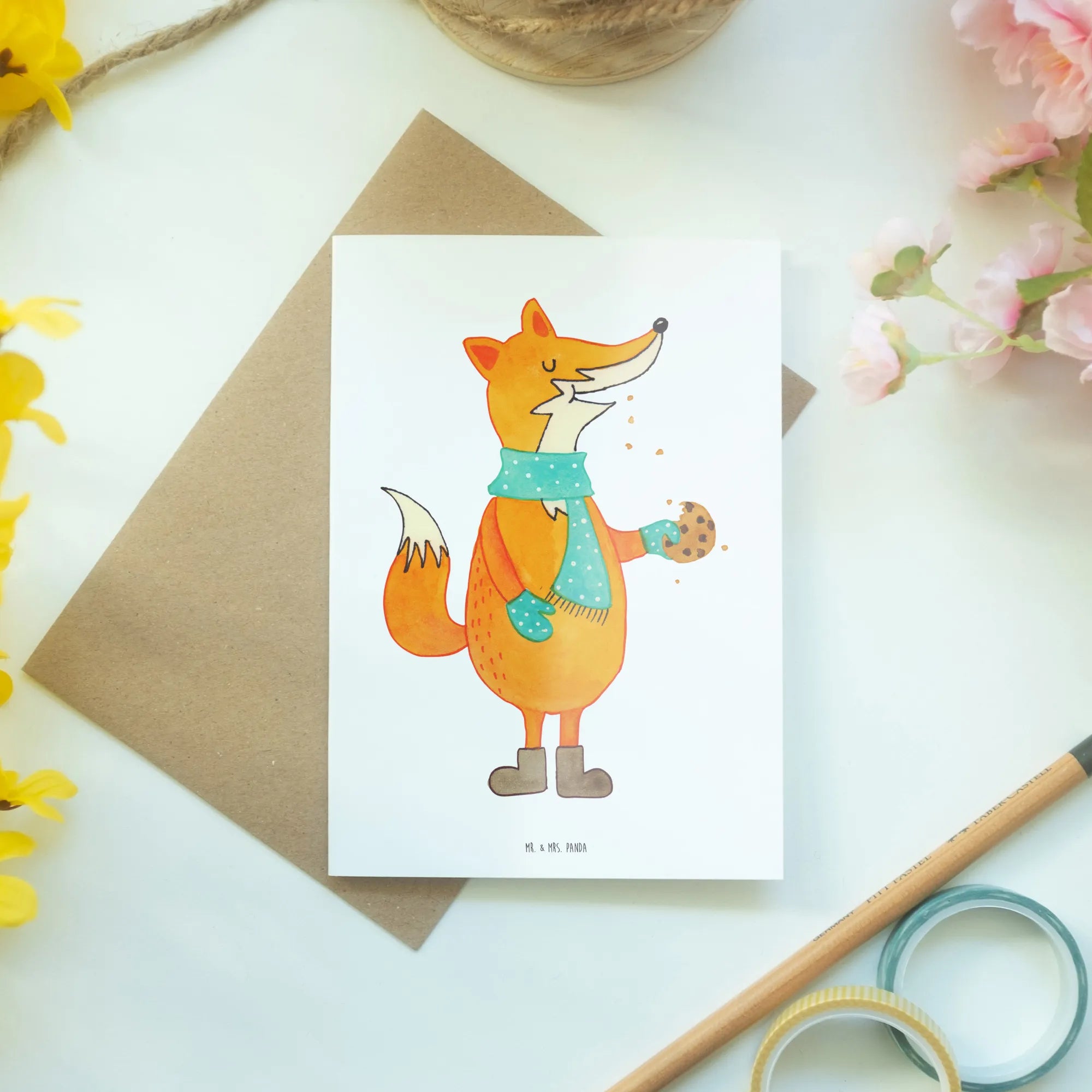 Die wunderschöne Grußkarte 'Fuchs Keks' von Mr. & Mrs. Panda ist das perfekte Geschenk für alle, die gerne backen und lieben, was mit der Weihnachtszeit zu tun hat. Mit ihrem süßen Motiv eines kleinen, vor Freude strahlenden Fuchses, der einen köstlichen Keks genießt, bringt diese Klappkarte sofort ein Lächeln auf die Gesichter der Beschenkten.