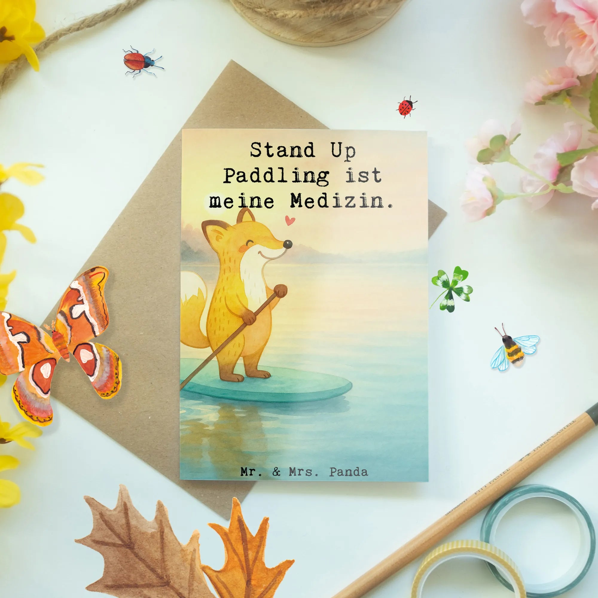 Grußkarte Fuchs Stand Up Paddling Design - mit Spruch