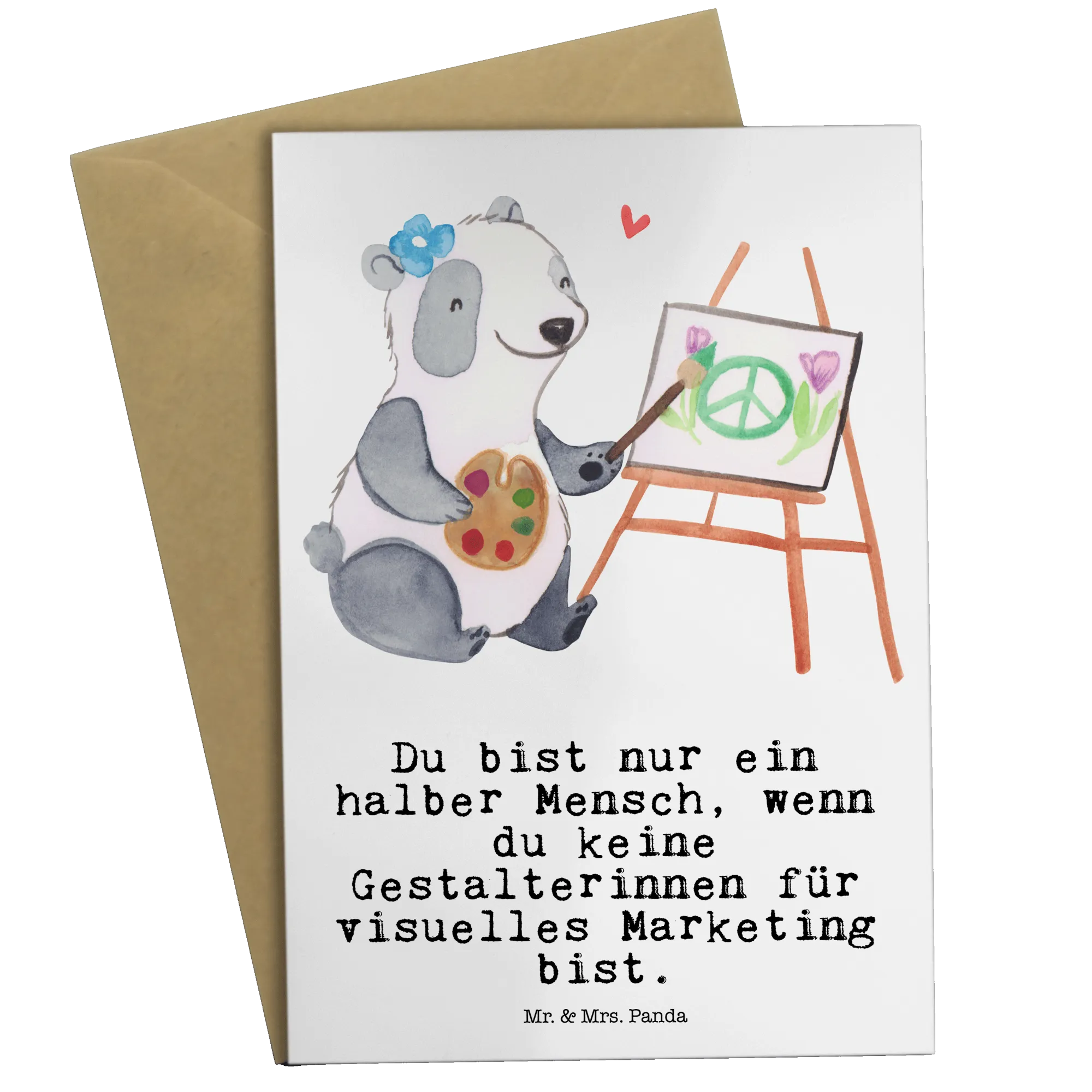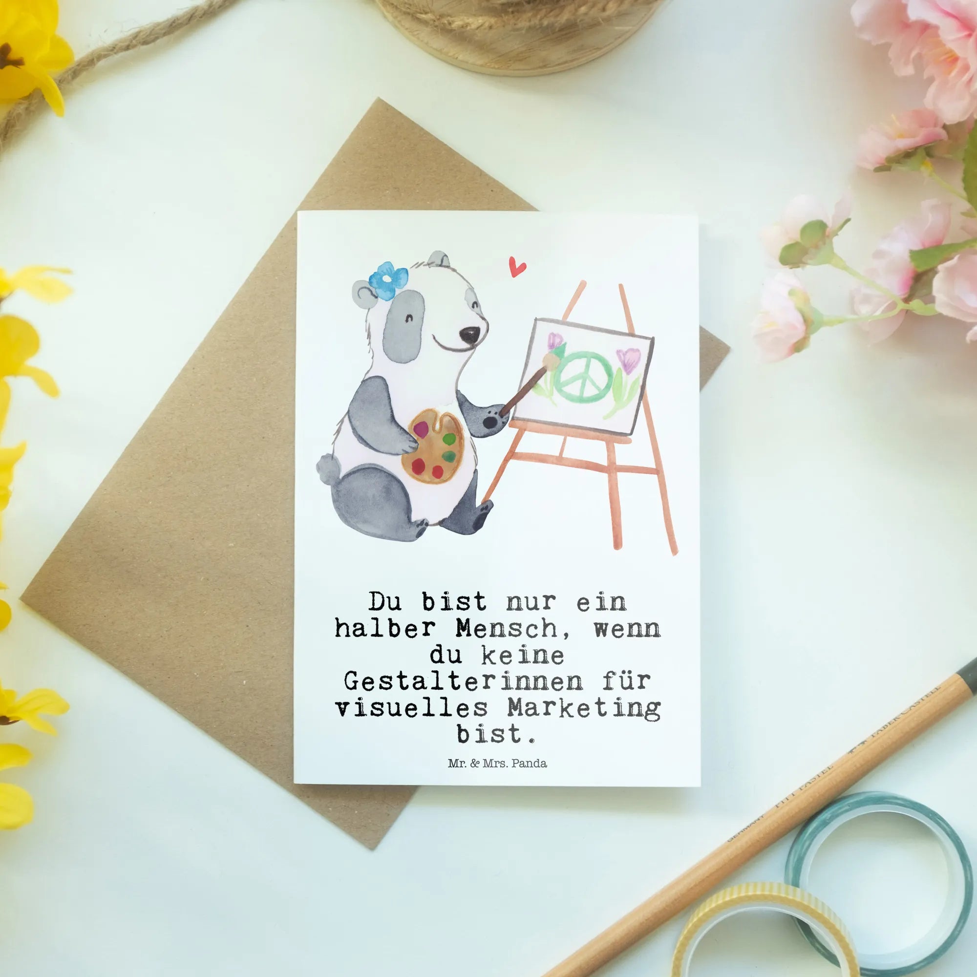 Entdecke die zauberhafte Grußkarte "Gestalterinnen für visuelles Marketing mit Herz" aus der einzigartigen Berufe Kollektion von Mr. & Mrs. Panda! Diese wunderschöne und einzigartige Grußkarte ist das ideale Geschenk für alle kreativen Köpfe, die im Bereich visuelles Marketing tätig sind. Egal, ob Du eine herzliche Nachricht zur Jobbeginn, zur Beförderung oder sogar zum Abschied verschicken möchtest, mit dieser Karte machst Du garantiert alles richtig.