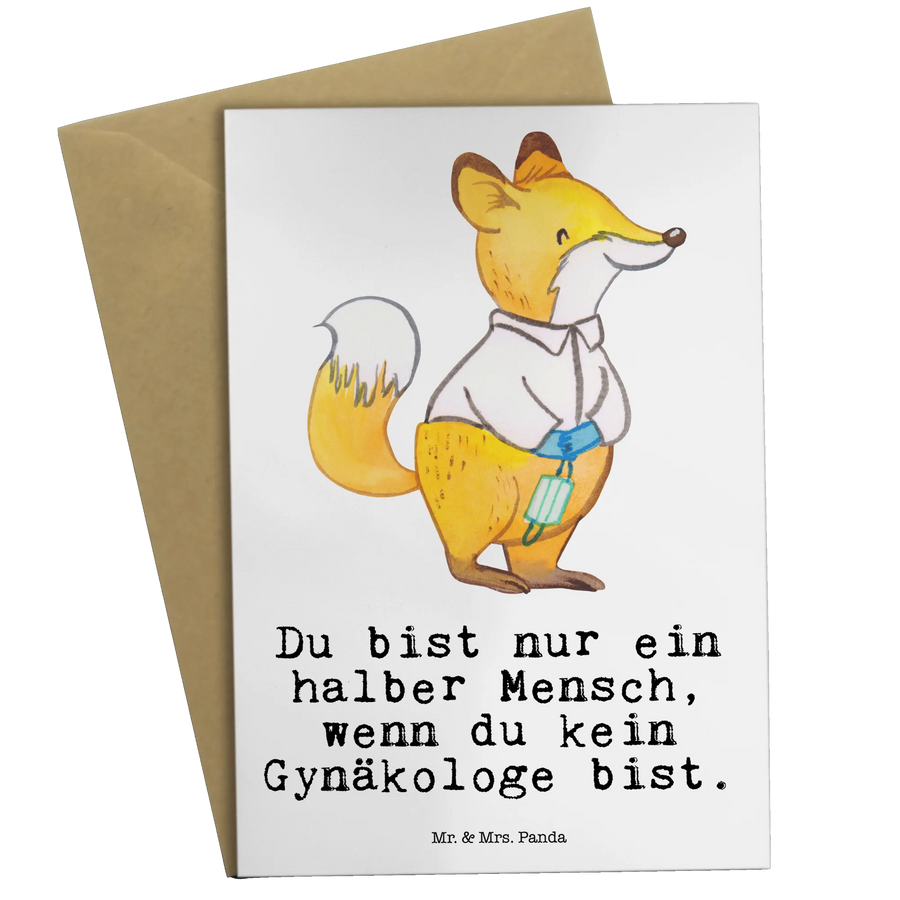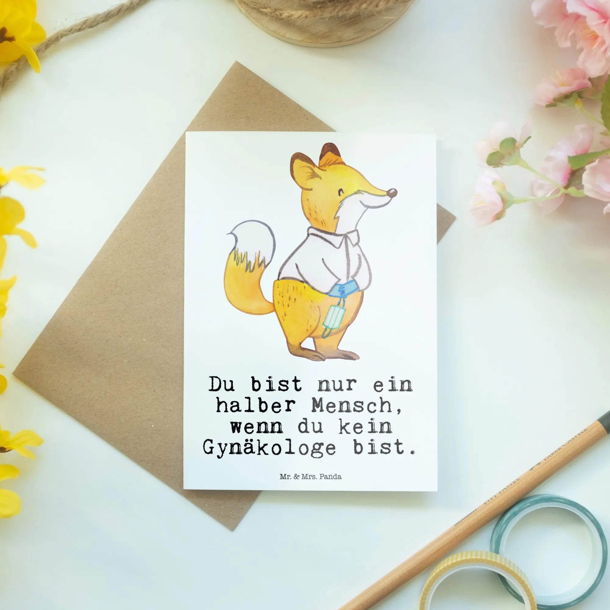 Das süße Motiv zeigt einen niedlichen Gynäkologen mit Handschuhen und einem Herz, um eine liebevolle Verbindung zu schaffen. Mit dem Spruch "Du bist nur ein halber Mensch, wenn du kein Gynäkologe bist" bringt die Karte ein Lächeln auf jedes Gesicht.