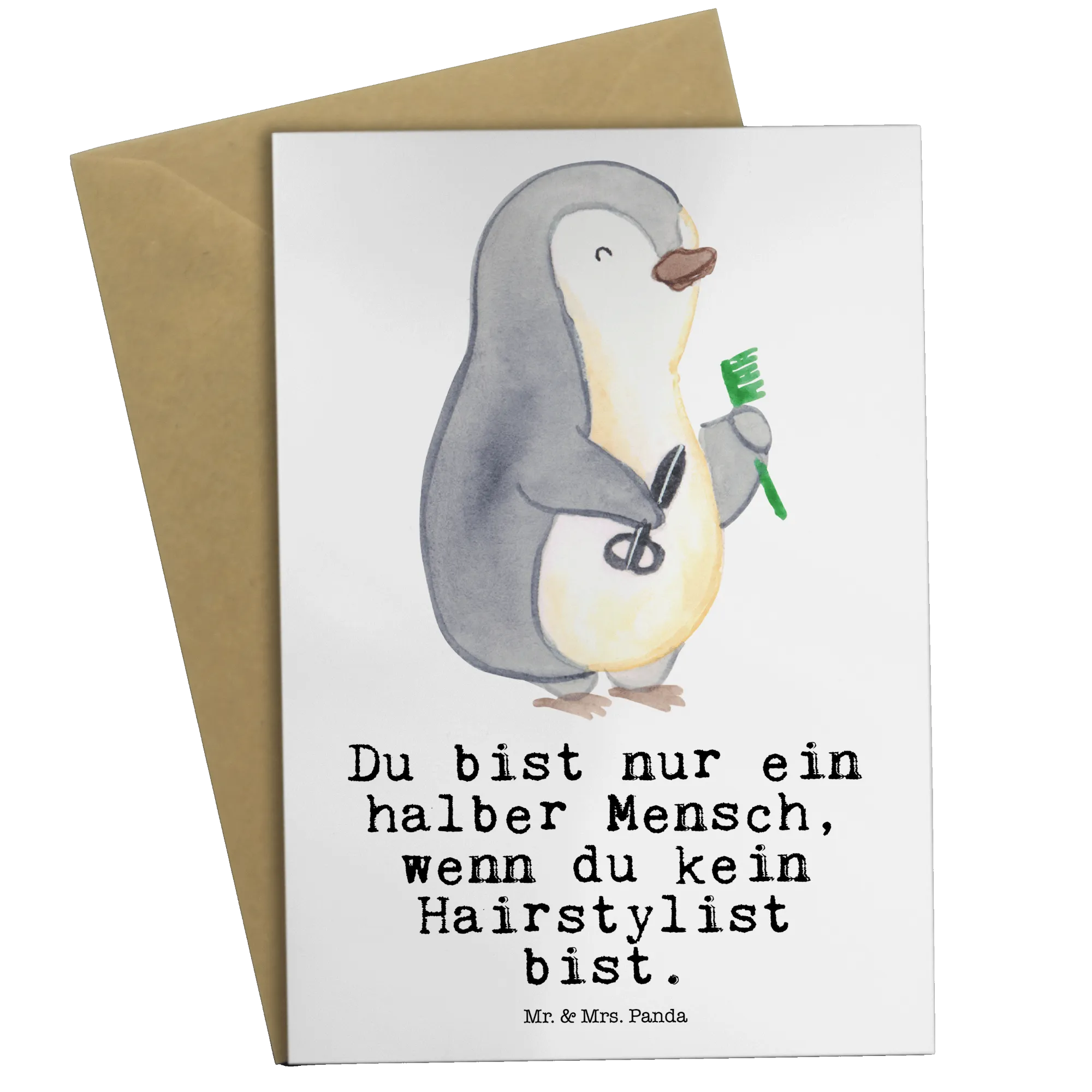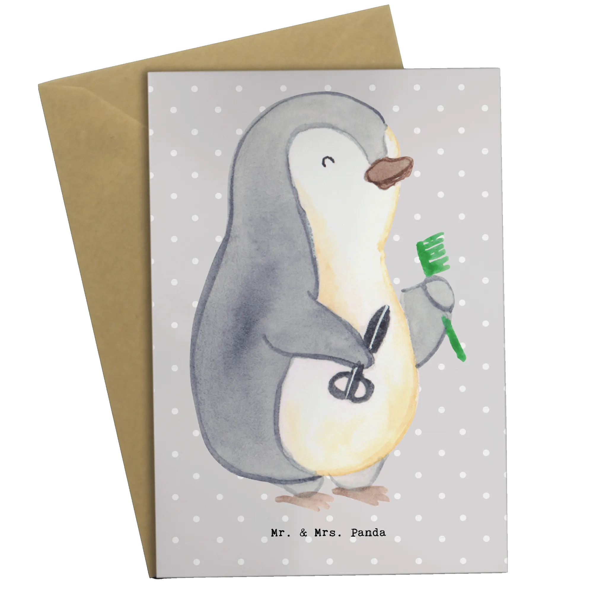 Die wunderschöne Grußkarte "Hairstylist mit Herz" von Mr. & Mrs. Panda ist das perfekte Geschenk für alle Friseure und Hairstylisten, die ihre Leidenschaft fürs Frisieren lieben! Ob zum Geburtstag, zum Jubiläum oder einfach nur als kleines Dankeschön – diese Karte bringt Freude in jeden Friseursalon!