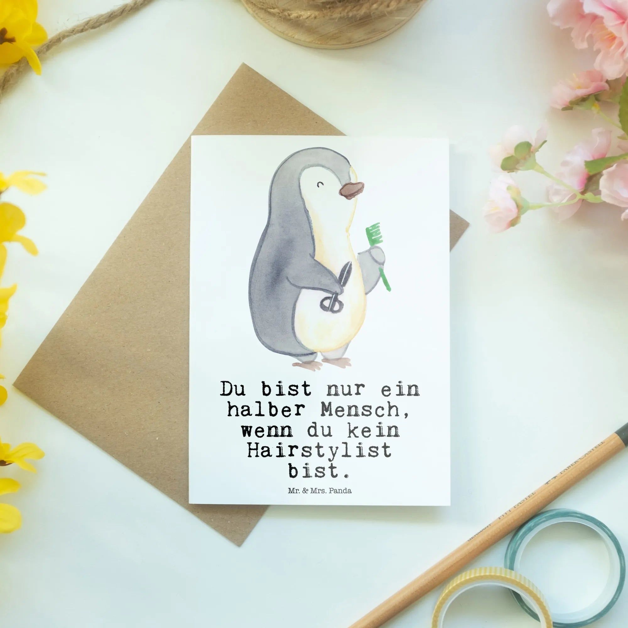 Bist du auf der Suche nach dem perfekten Geschenk für einen leidenschaftlichen Hairstylisten oder Frisör? Unsere wunderschöne Grußkarte "Hairstylist mit Herz" aus der kreativen Kollektion Beruf von Mr. & Mrs. Panda ist die ideale Wahl!