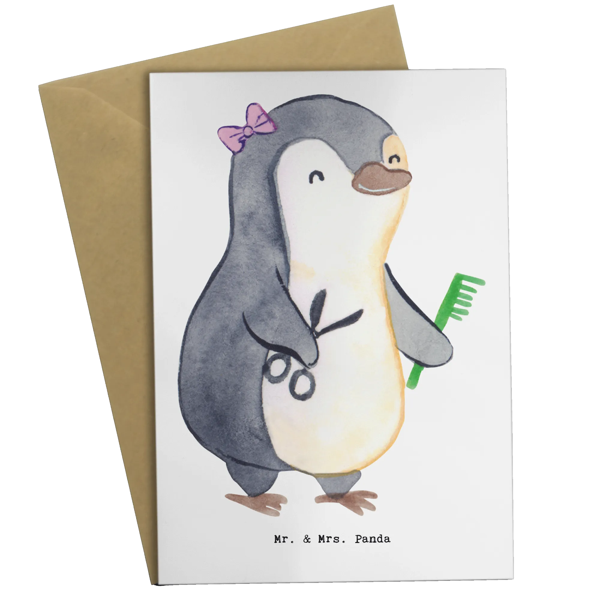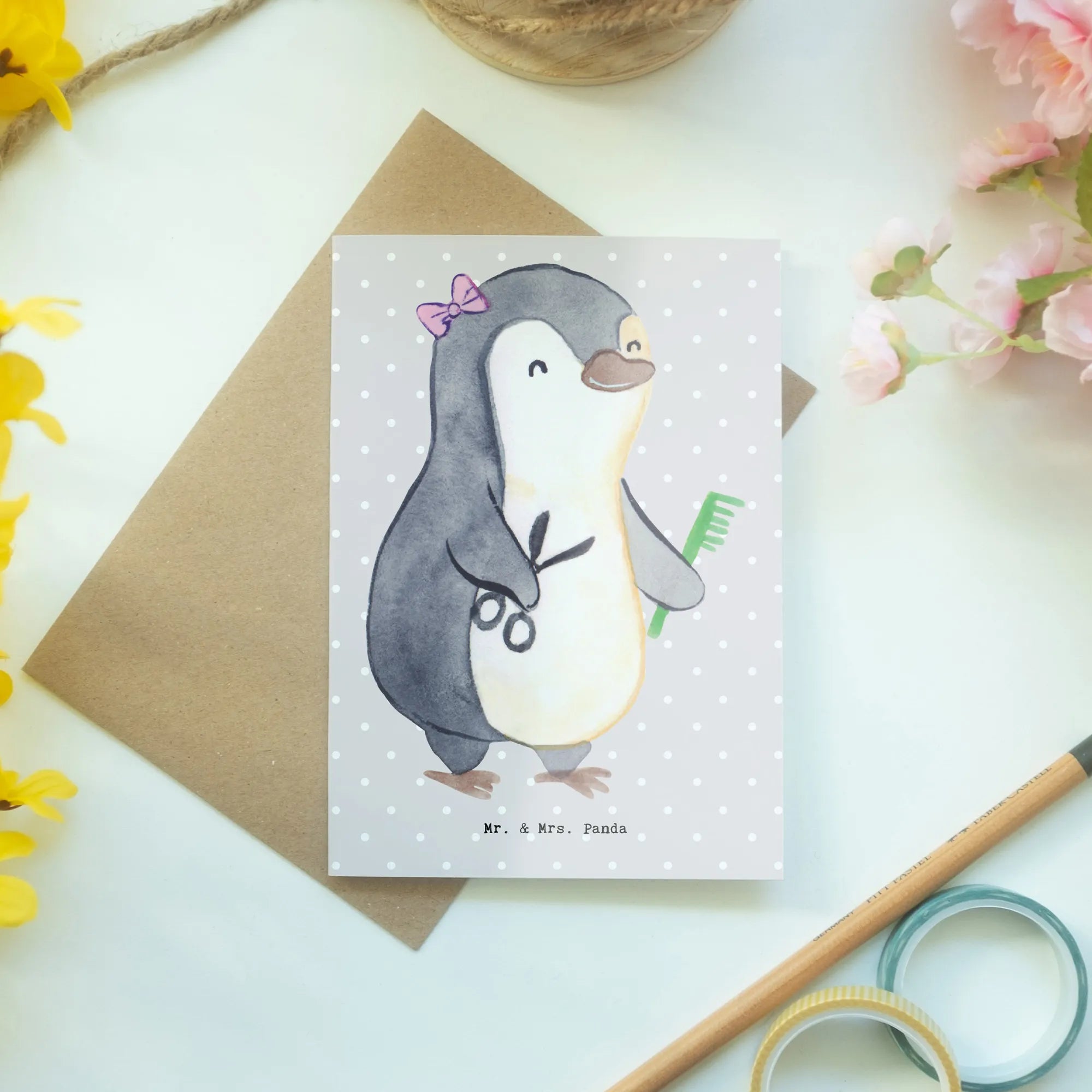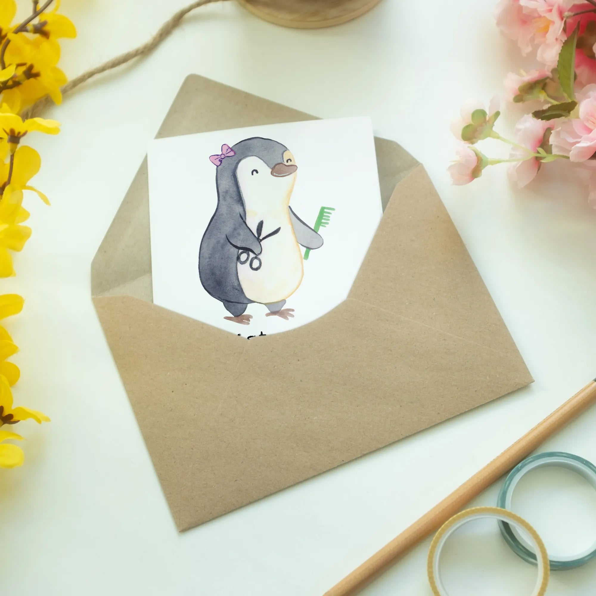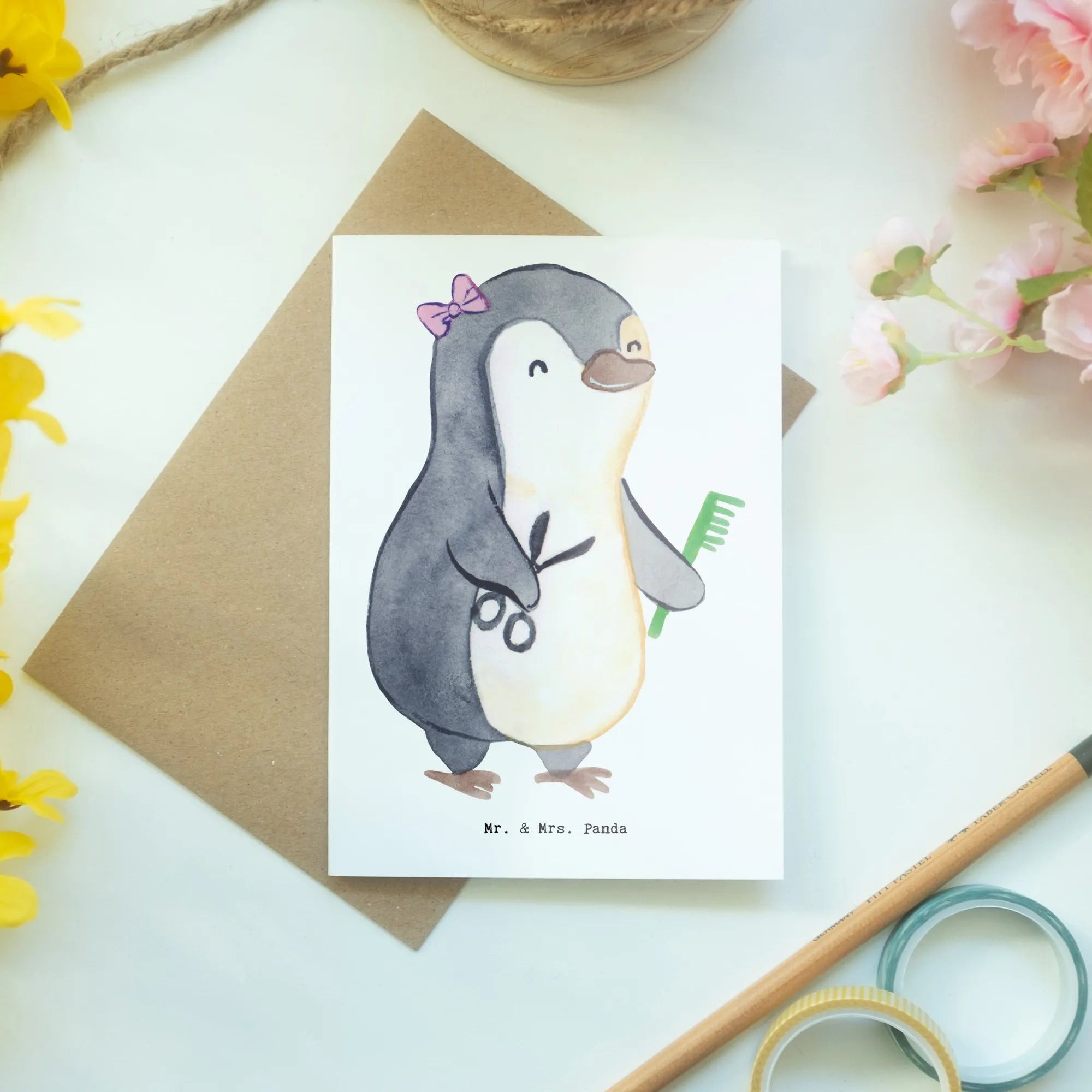 Entdecke die wunderschöne Grußkarte "Hairstylistin mit Herz" von Mr. & Mrs. Panda!