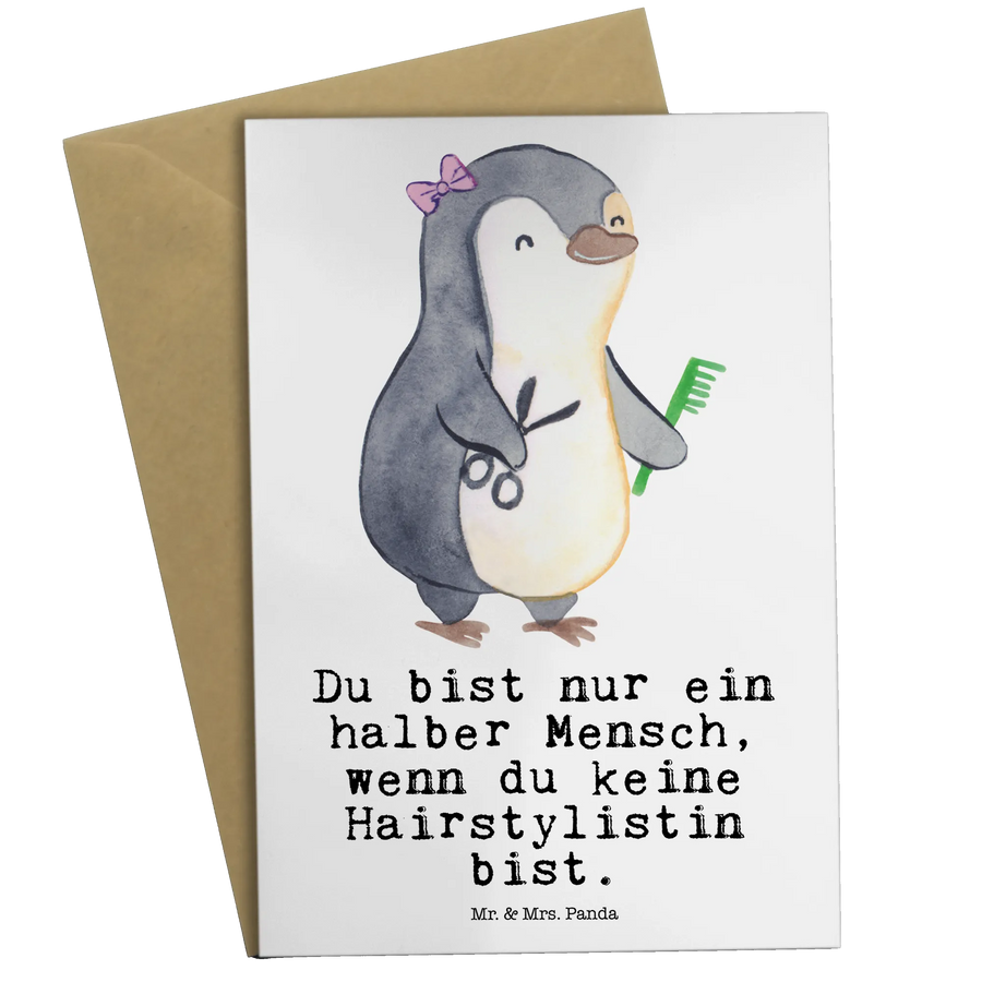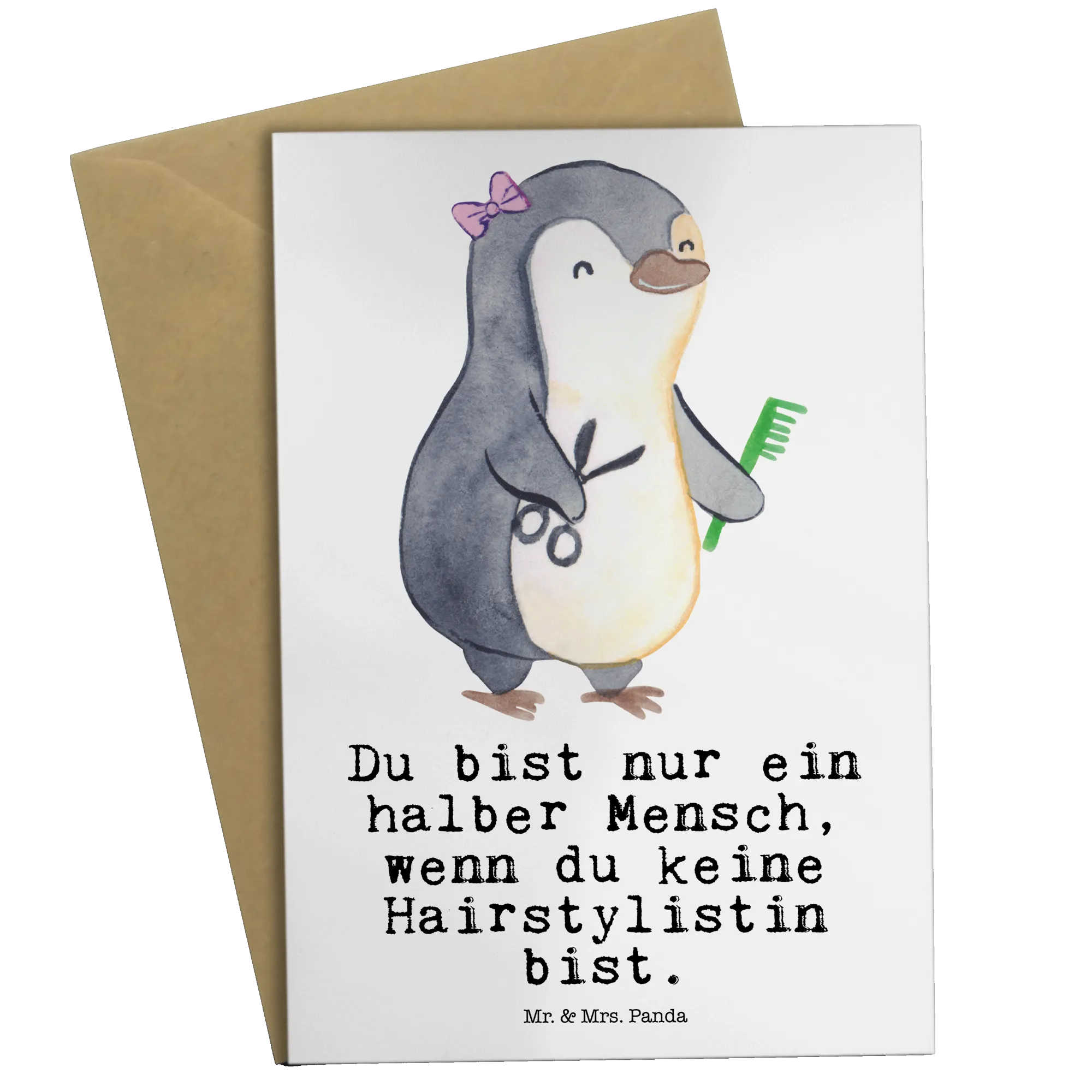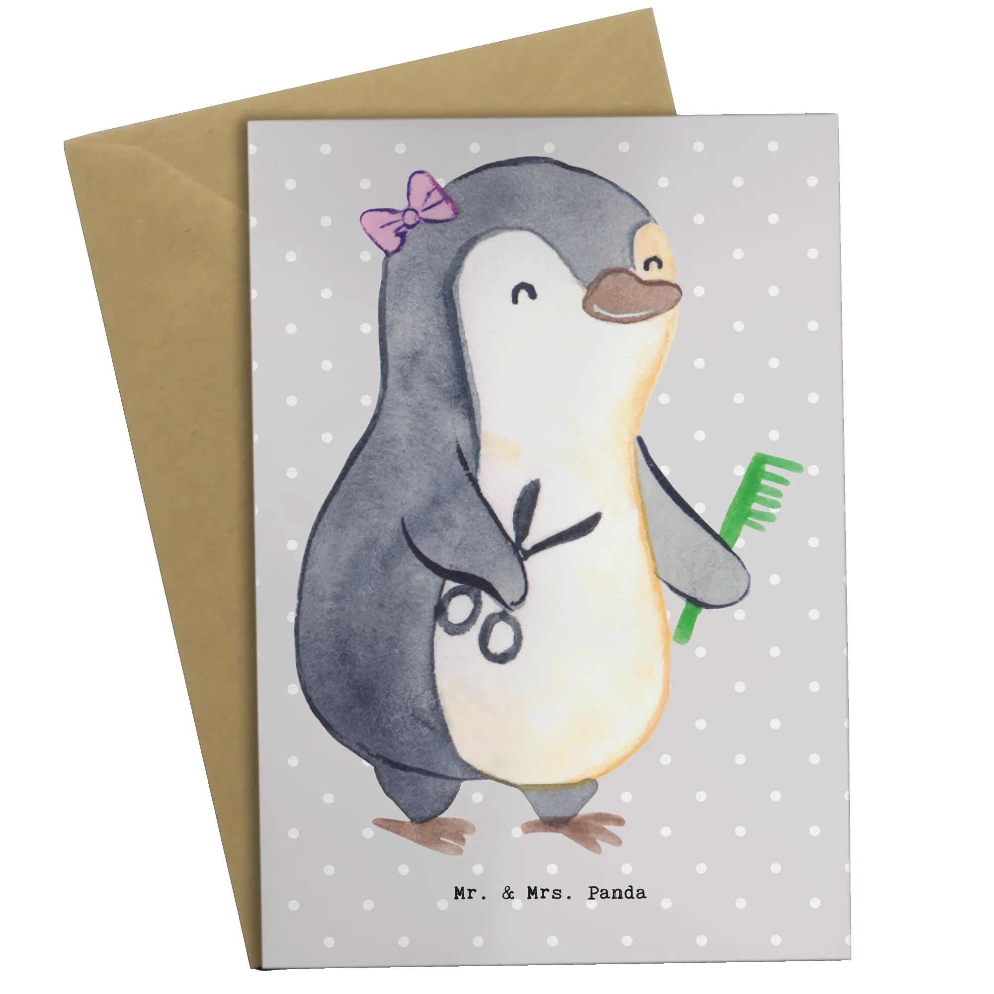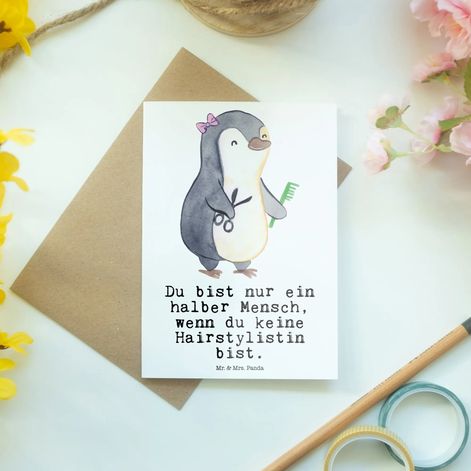 Entdecke die wunderschöne Grußkarte "Hairstylistin mit Herz" von Mr. & Mrs. Panda!