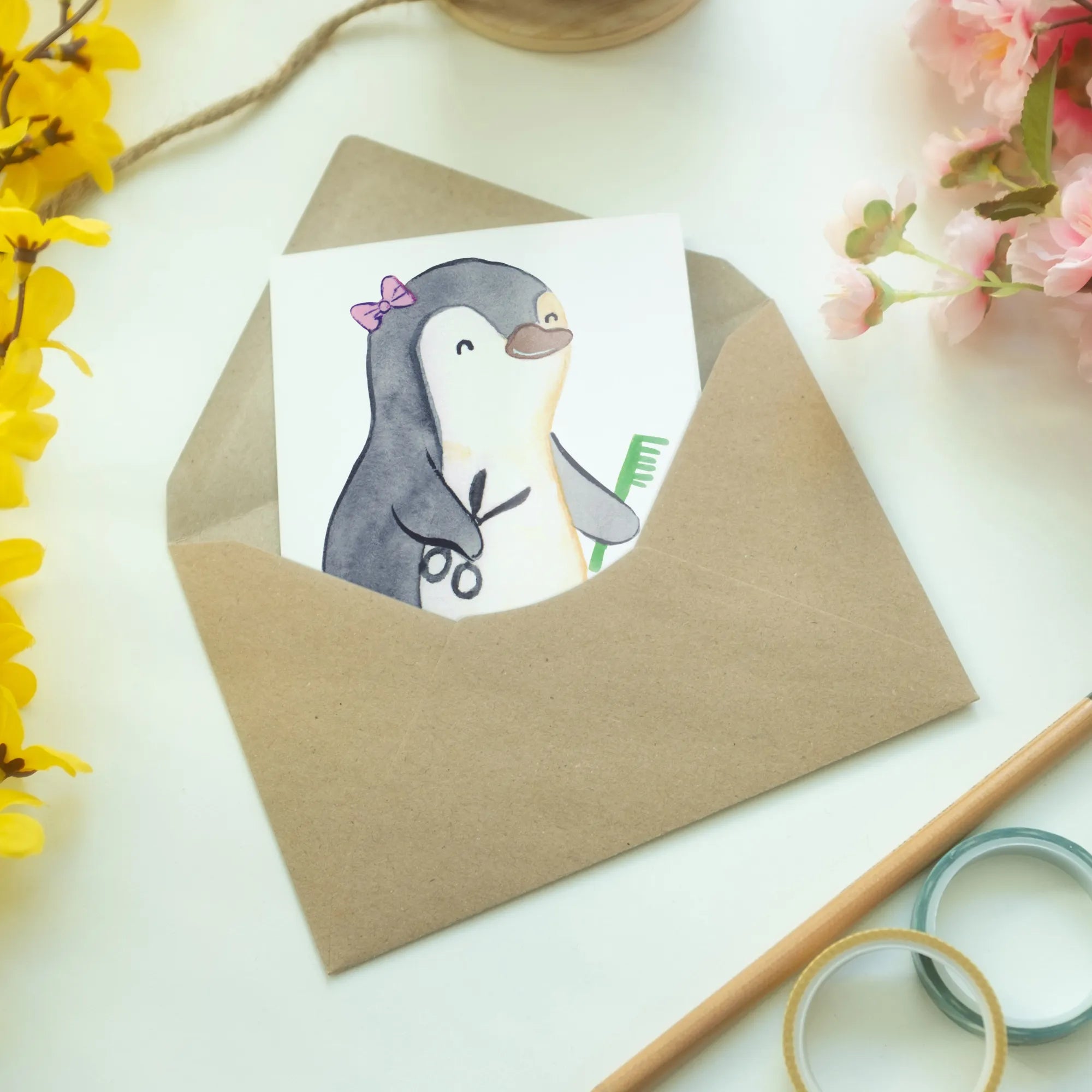 Bist du auf der Suche nach der perfekten Grußkarte für eine Hairstylistin in deinem Leben? Unsere Grußkarte 'Hairstylistin mit Herz' von Mr. & Mrs. Panda ist genau das Richtige! Diese wunderschöne und einzigartige Klappkarte mit ihrem niedlichen Pinguin-Motiv wird jedem Hairstylisten ein Lächeln ins Gesicht zaubern. Egal ob zum Berufsjubiläum, als Dankeschön für die tolle Arbeit oder einfach so, um seine Wertschätzung auszudrücken - diese Karte ist immer ein Hit!