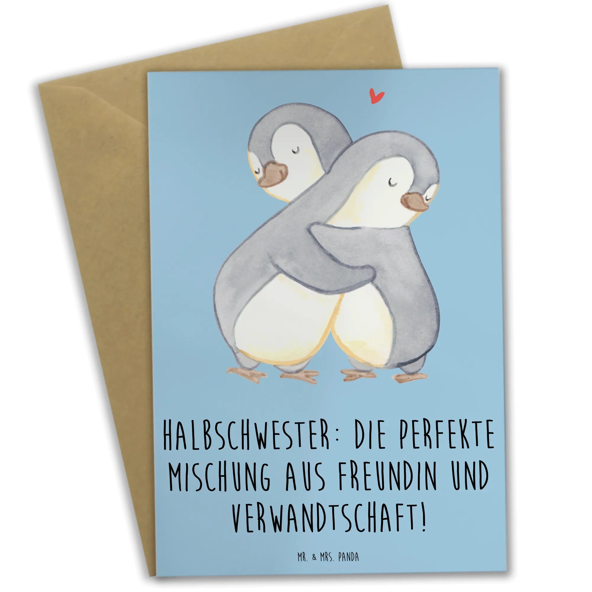 Jede Karte aus der Kollektion Familie & Verwandte von Mr. & Mrs. Panda erzählt eine eigene Geschichte und bringt Freude und Liebe in jeden Haushalt. Diese Grußkarte eignet sich nicht nur für Halbschwestern, sondern auch für Mütter, Tanten oder enge Freundinnen, die wie Schwestern sind. Schenke deiner Halbschwester, oder jemandem, der ihr nahe steht, ein Stück deiner Liebe mit dieser herzlichen Karte.