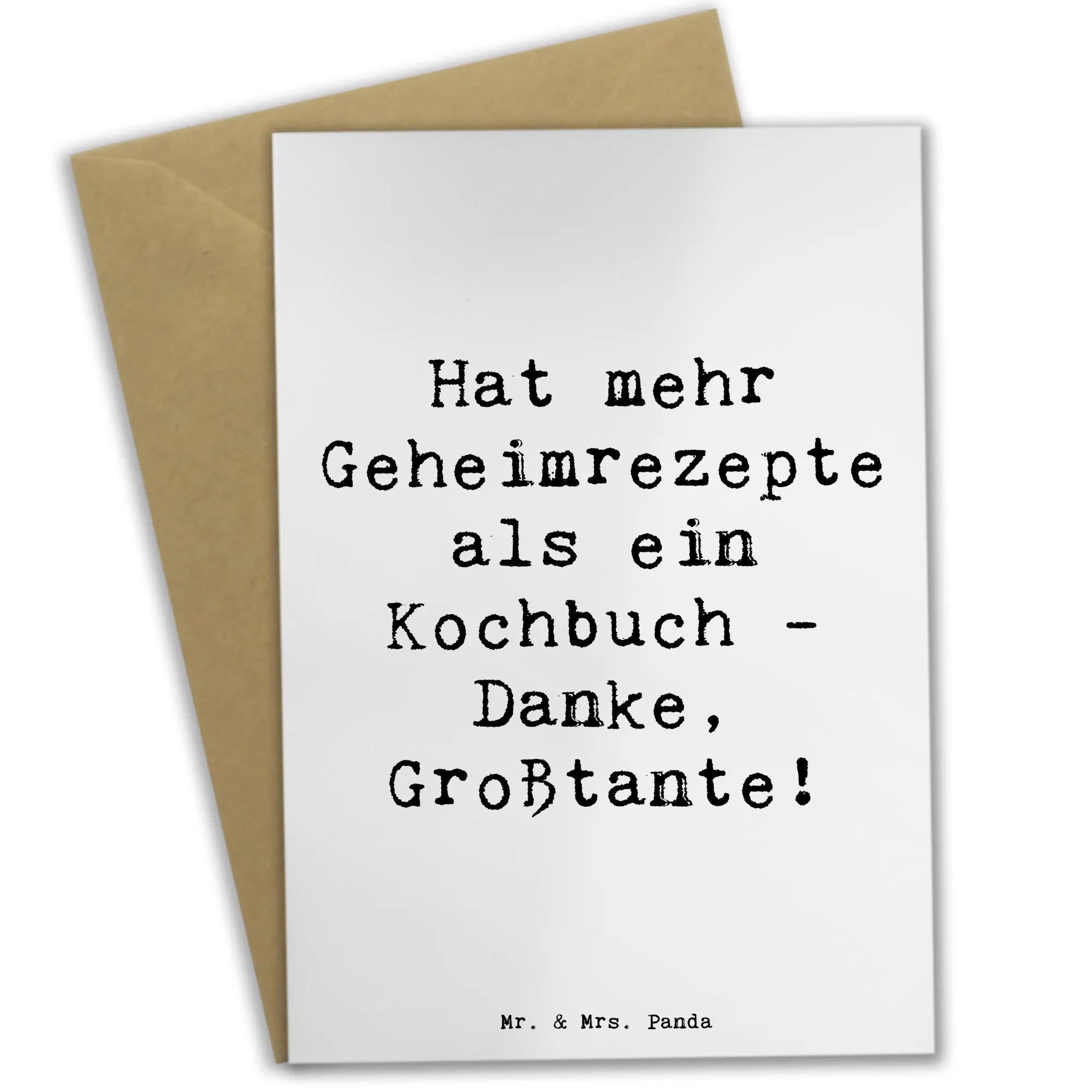 Deine Großtante ist eine wahre Meisterin der Geheimrezepte. Jedes Mal, wenn sie etwas für dich zaubert, kommen die leckersten und ausgefallensten Kreationen auf den Tisch. Sie ist wie ein wandelndes Kochbuch voller wertvoller und geheimer Familienrezepte, die nur sie kennt. Diese besonderen Momente, wenn sie ihr Wissen und ihre Liebe durch ihre Kochkünste teilt, sind unbezahlbar. Danke, liebe Großtante, für all die magischen Rezepte und Erinnerungen!