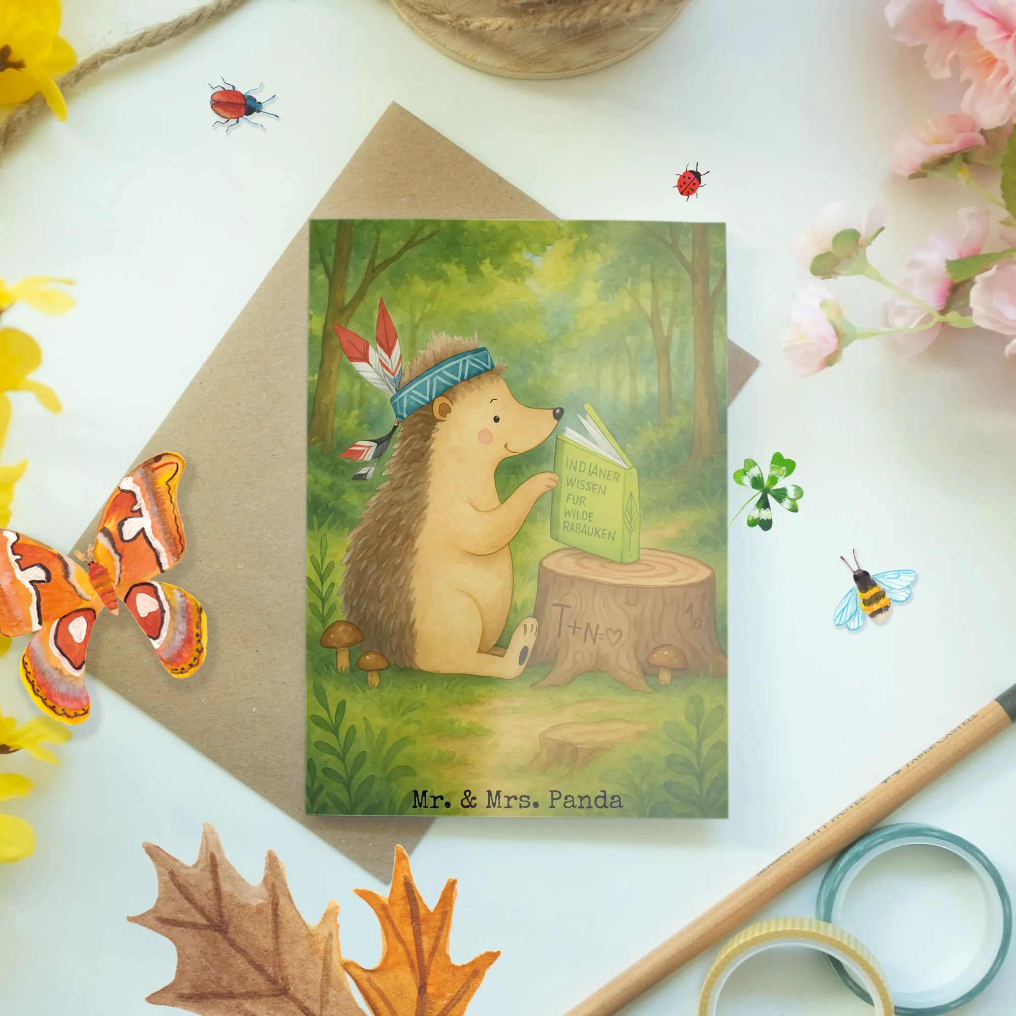 Grußkarte Igel Federschmuck Design – Mr. & Mrs. Panda