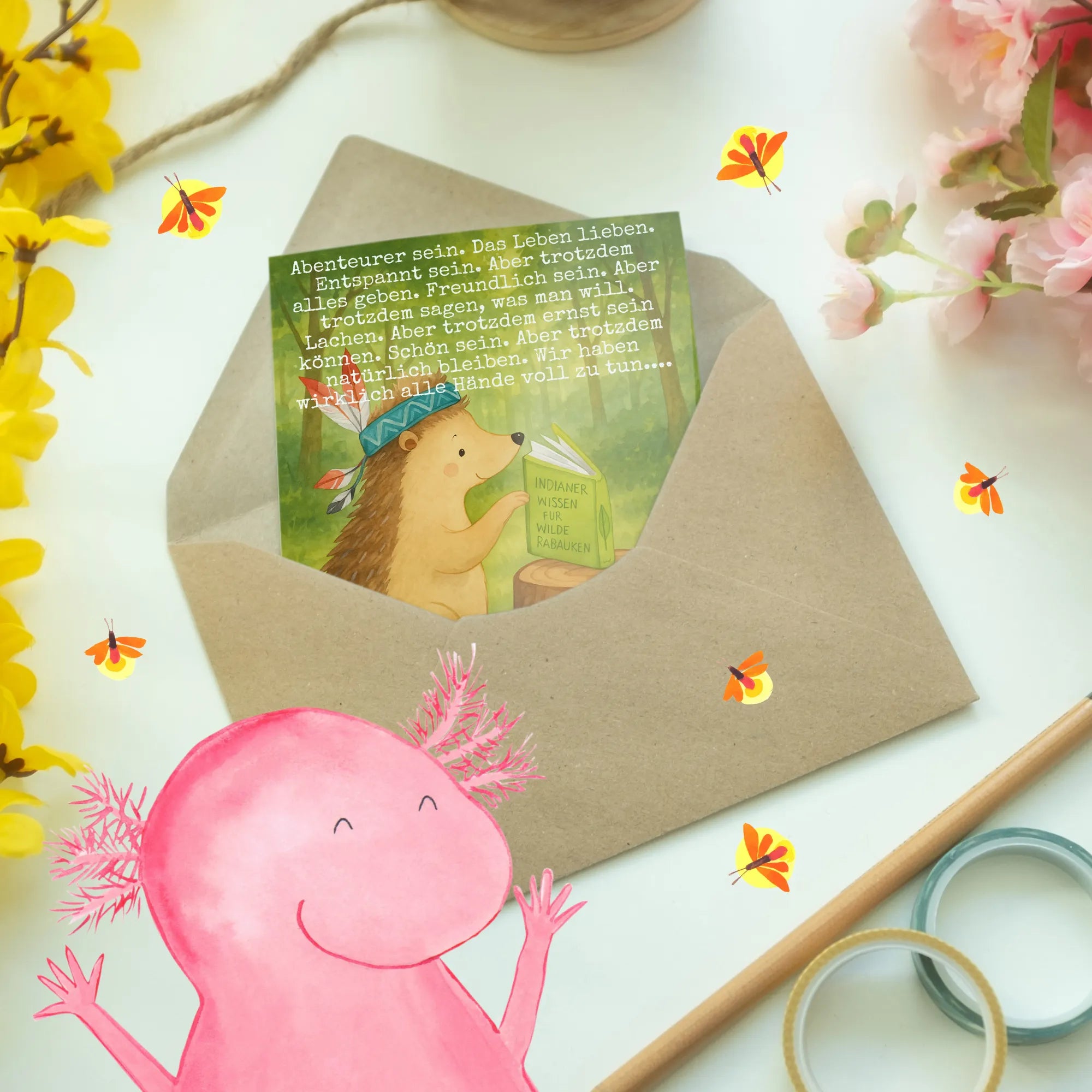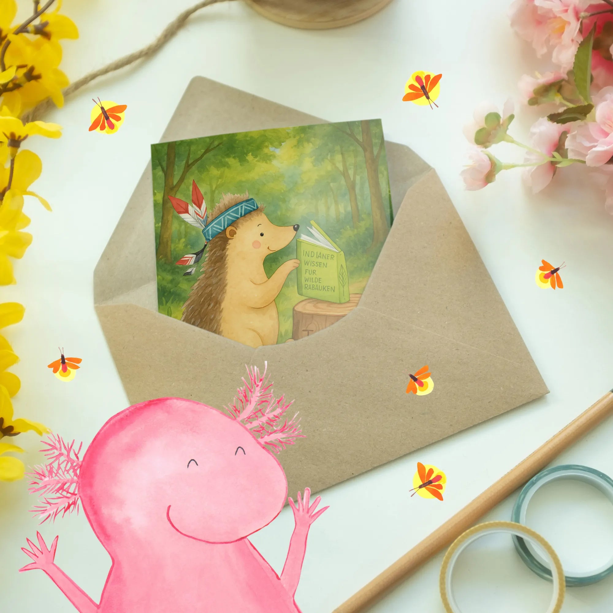Grußkarte Igel Federschmuck Design Grußkarte, Klappkarte, Einladungskarte, Glückwunschkarte, Hochzeitskarte, Geburtstagskarte, Karte, Ansichtskarten, Waldtiere, Tiere, Igel, Indianer, Abenteuer, Lagerfeuer, Camping