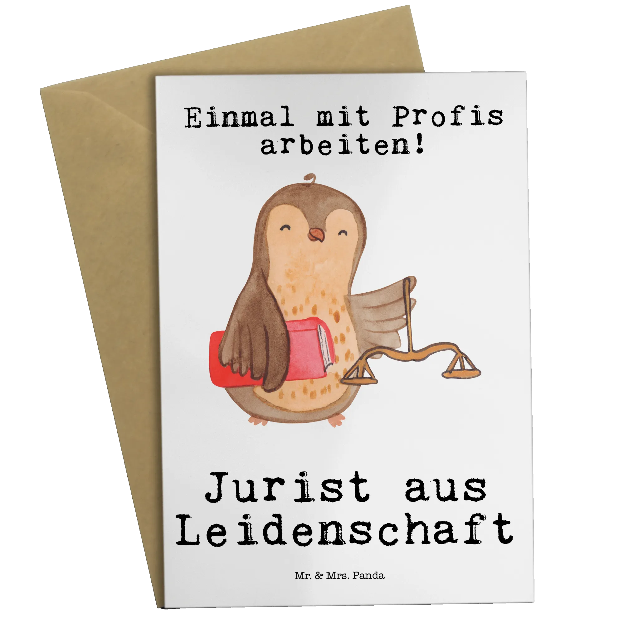Mit unserer zauberhaften Grußkarte "Jurist aus Leidenschaft" aus der Berufe Kollektion von Mr. & Mrs. Panda erhältst du das perfekte Geschenk für all deine Freunde und Kollegen, die im juristischen Bereich tätig sind oder ihre Jura Ausbildung abgeschlossen haben.
