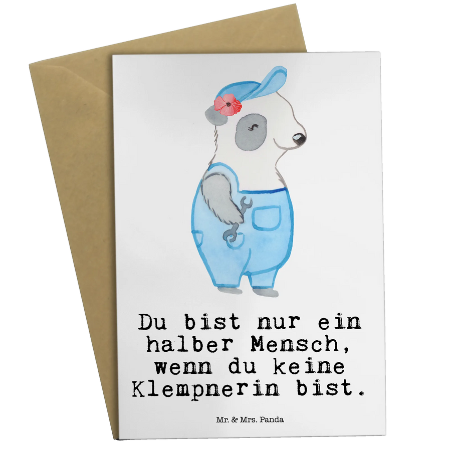 Entdecke die perfekte Grußkarte für die Klempnerin und Handwerkerin in Deinem Leben! Diese liebevoll gestaltete Grußkarte von Mr. & Mrs. Panda mit dem entzückenden Motiv 'Klempnerin mit Herz' ist der ideale Weg, um Dank und Anerkennung auszudrücken.