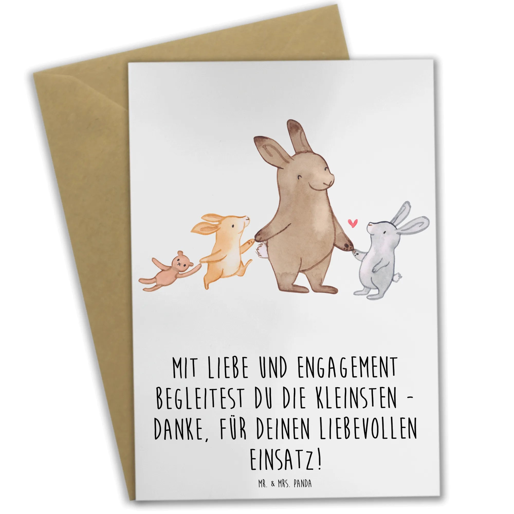 Der süße Spruch auf der Vorderseite: 'Mit Liebe und Engagement begleitest du die Kleinsten - Danke, für deinen liebevollen Einsatz!' macht sie zu einem einzigartigen Geschenk für jede Gelegenheit, bei der du 'Danke' sagen möchtest.
