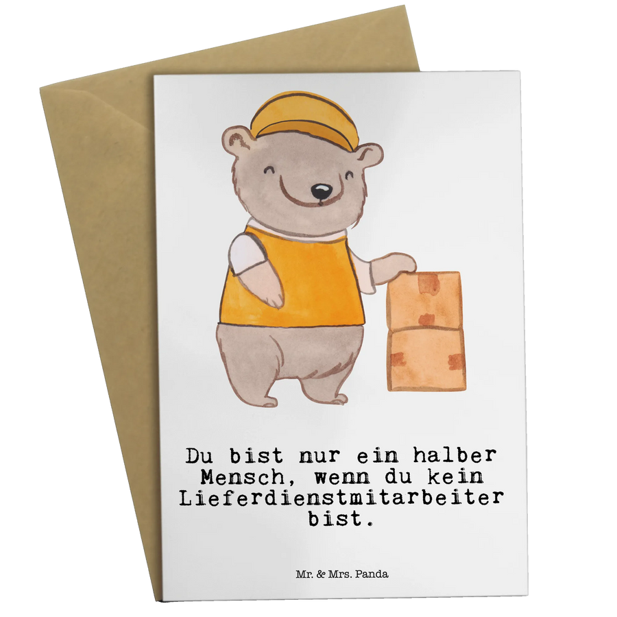 Entdecke die bezaubernde Grußkarte "Lieferdienstmitarbeiter mit Herz" von Mr. & Mrs. Panda!