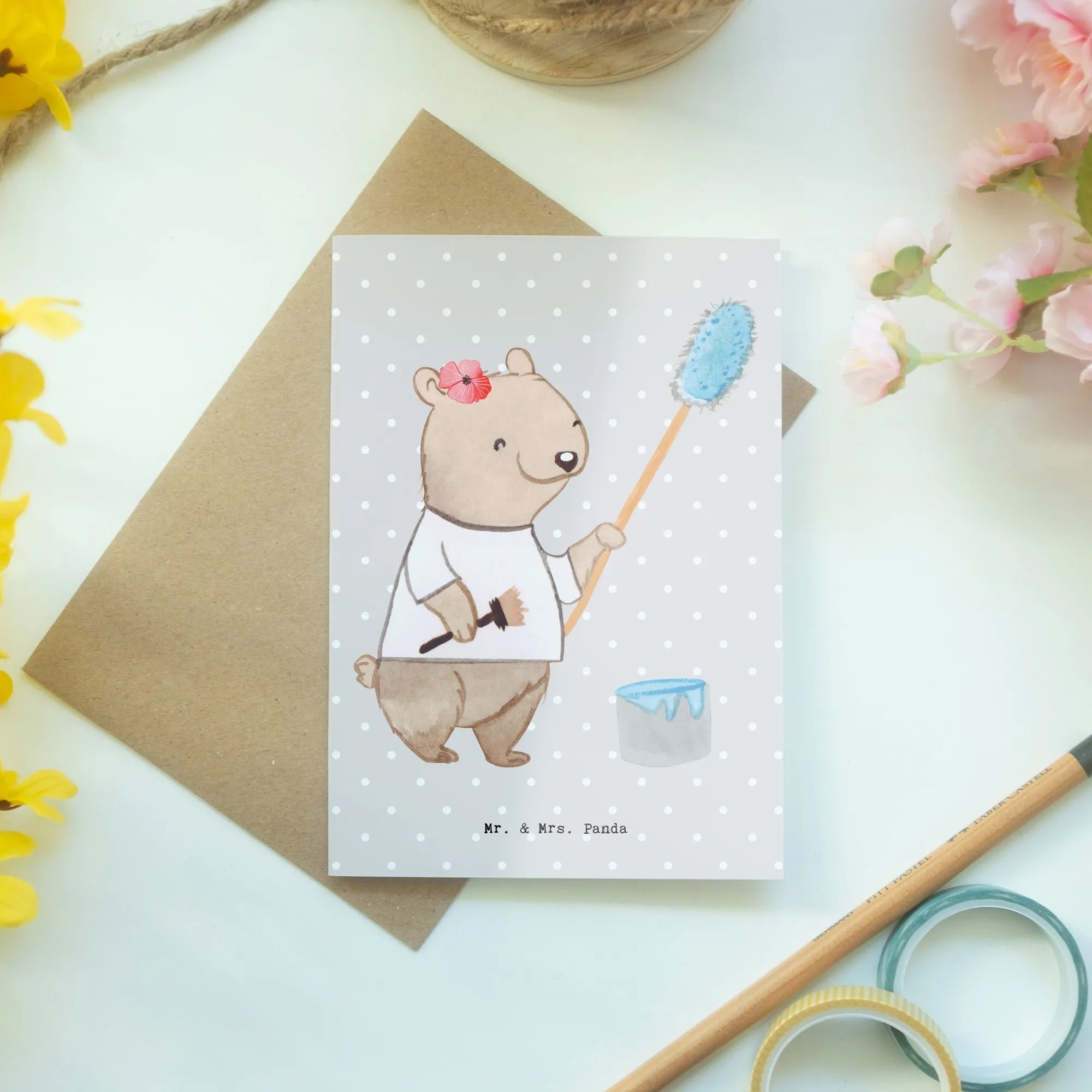 Egal, ob Du eine Malermeisterin oder einen Maler als Freund hast, diese Karte ist das perfekte Geschenk, um eine Verbindung herzustellen. Lass Deiner Kreativität freien Lauf und erfreue Dich und andere mit dieser zauberhaften Grußkarte aus der Kollektion Berufe von Mr. & Mrs. Panda.