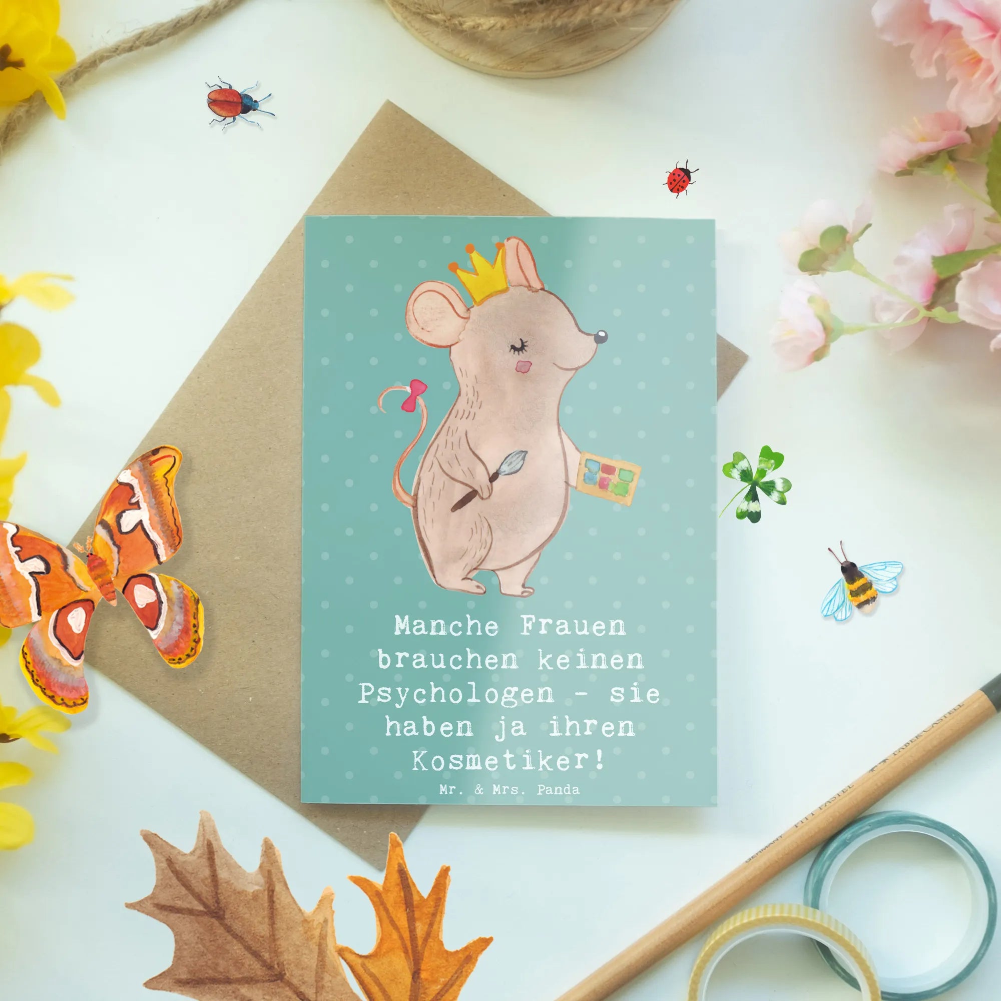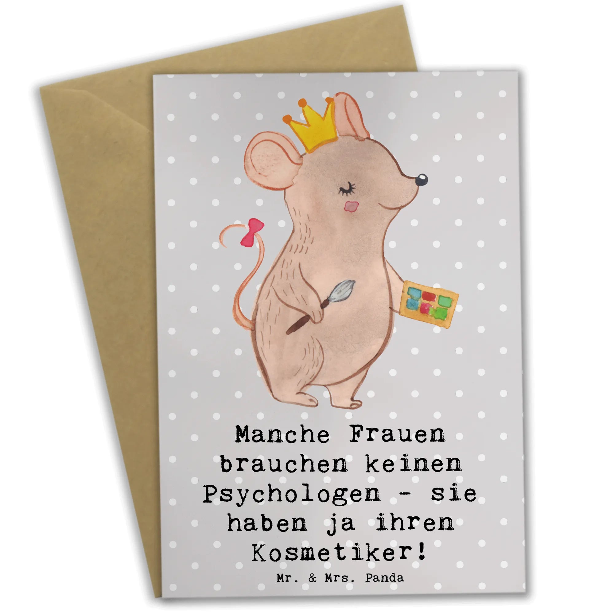 Verschenke Freude, eine Portion Humor und ganz viel Liebe – mit der schönen Grußkarte "Kosmetiker" von Mr. & Mrs. Panda!