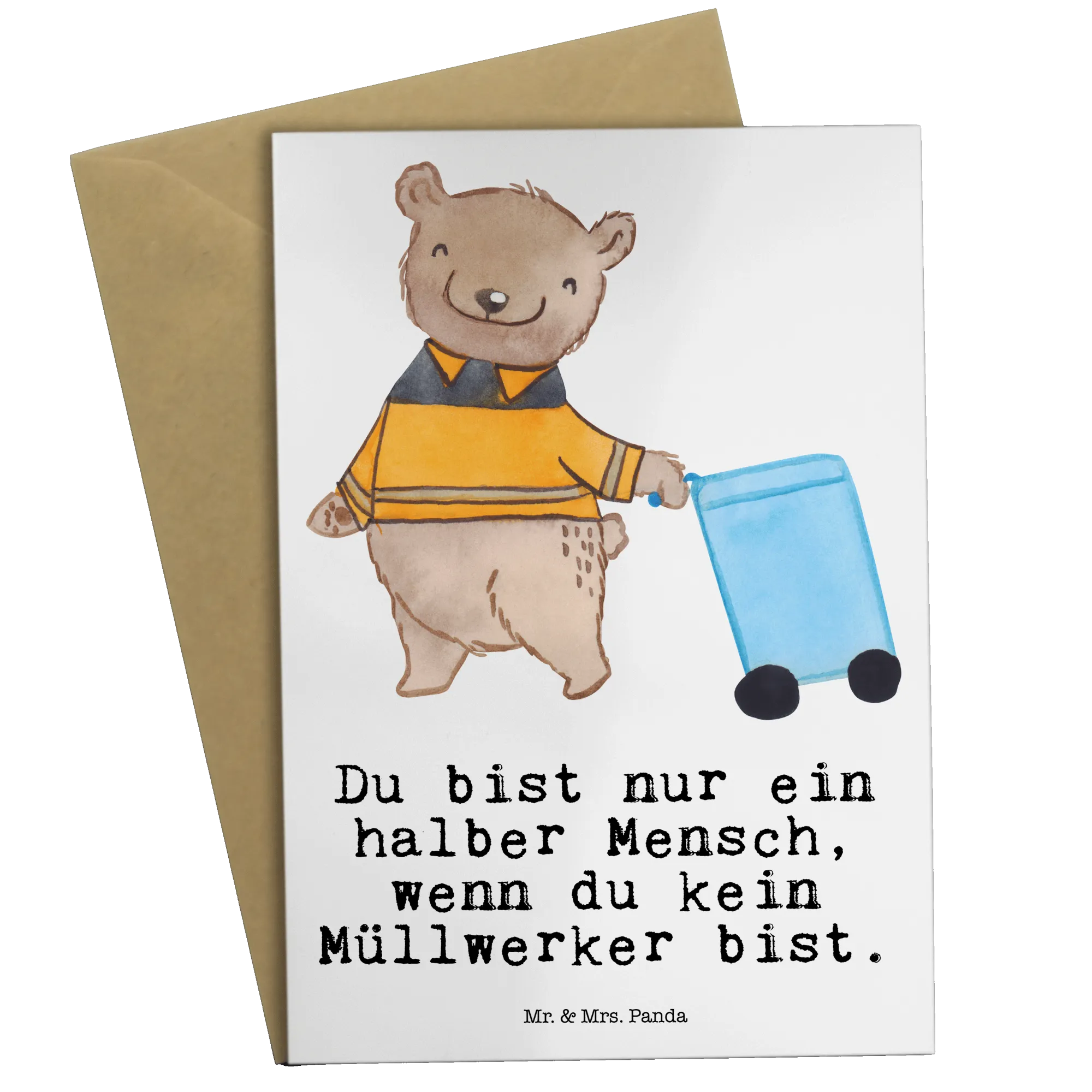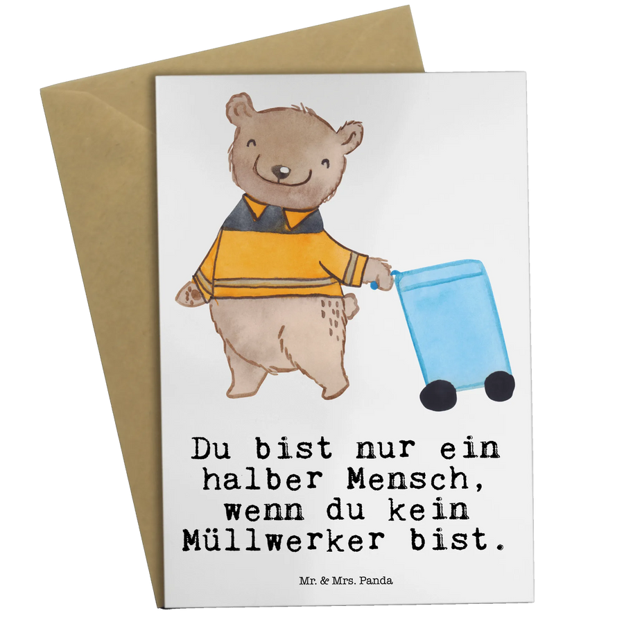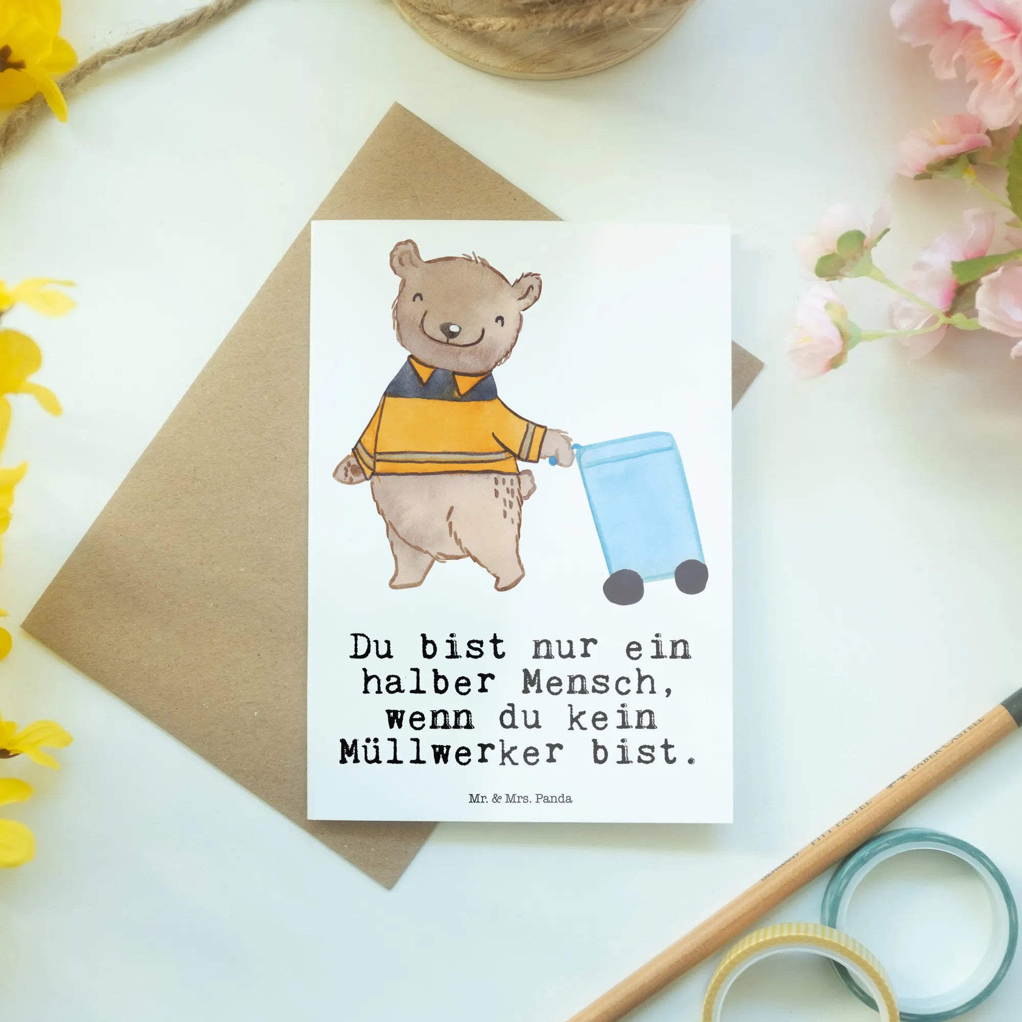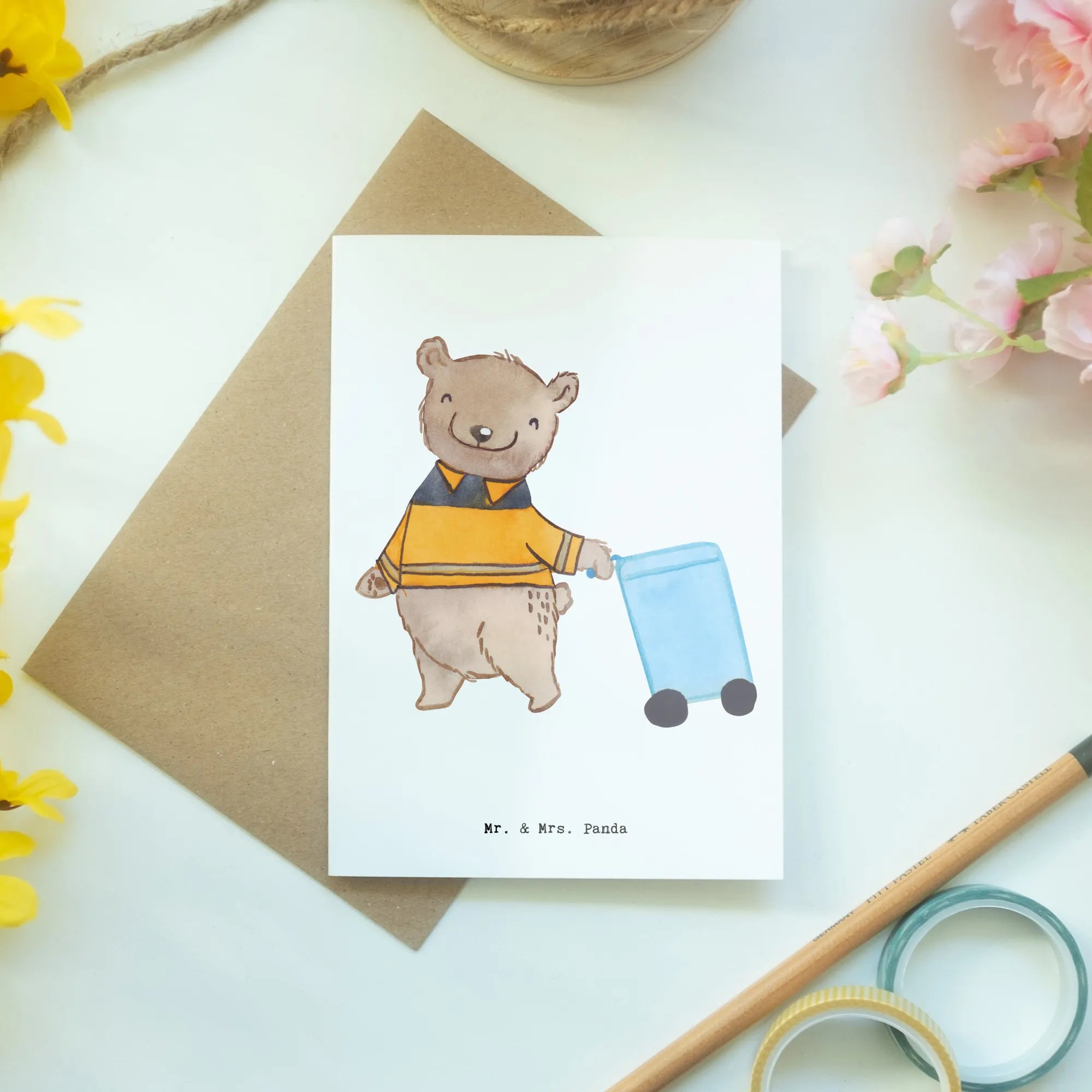 Entdecke die zauberhafte Grußkarte "Müllwerker mit Herz" aus der einzigartigen Berufe Kollektion von Mr. & Mrs. Panda!