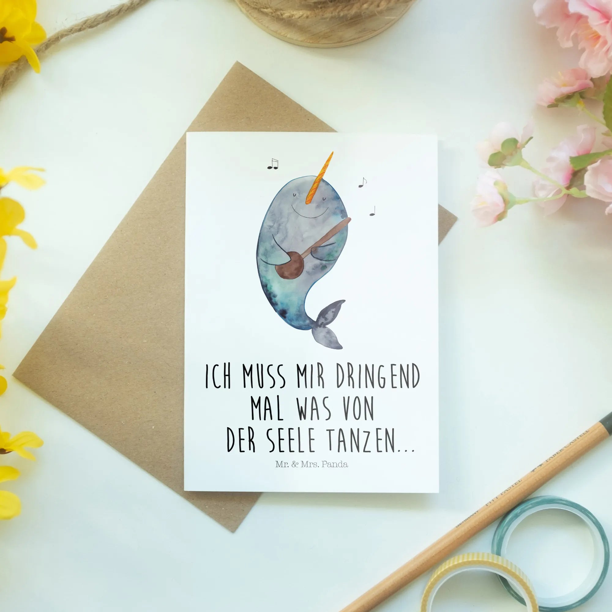 Bist du auf der Suche nach der perfekten Grußkarte, die süß, witzig und einzigartig ist? Dann ist die Grußkarte mit dem Motiv Narwal Gitarre aus der zauberhaften Meerestiere Kollektion von Mr. & Mrs. Panda genau das Richtige für dich!