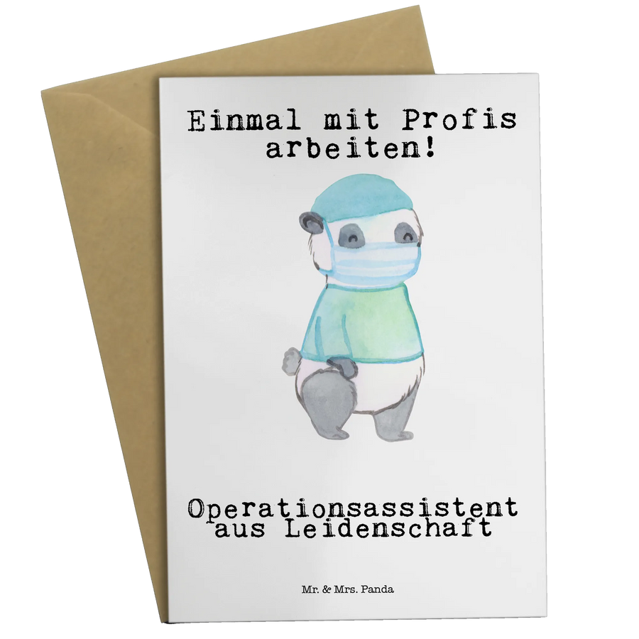 Verpackt in einem eleganten Umschlag kommt die Karte außerdem immer stilvoll daher. Lass die Menschen in deinem Leben wissen, wie sehr du ihre Arbeit wertschätzt und überrasche sie mit dieser charmanten Grußkarte von Mr. & Mrs. Panda. Egal zu welchem Anlass, die Grußkarte "Operationsassistent aus Leidenschaft" macht stets einen lieben Eindruck und bleibt im Gedächtnis.