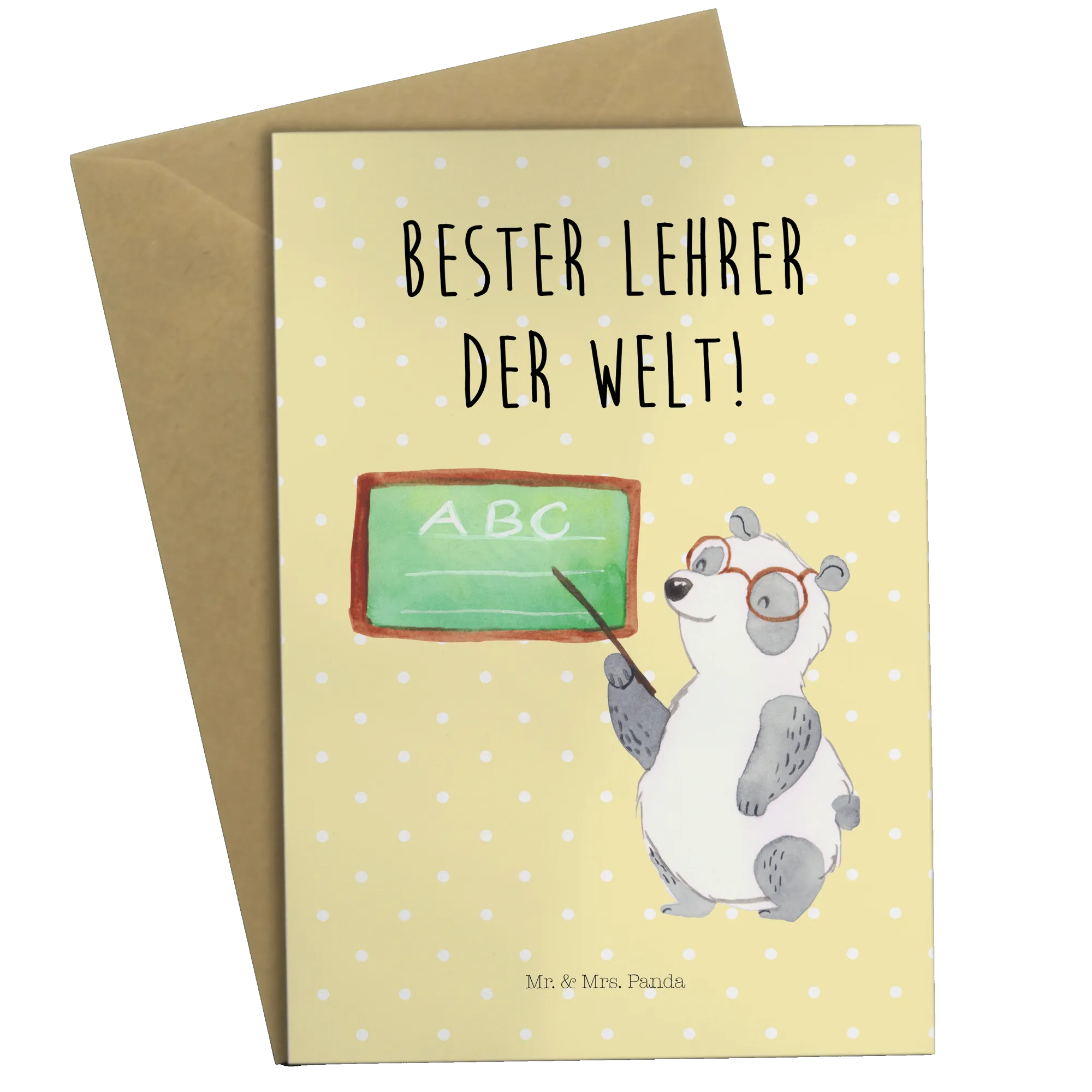 Diese Grußkarte ist ein Teil der einzigartigen Small World Kollektion von Mr. & Mrs. Panda, die für ihre knuffigen Tiermotive und guten Laune Sprüche bekannt ist. Verschenke Freude und motiviere andere, ebenso wie der Panda Lehrer es tut! Mit dieser Karte bist du immer auf der sicheren Seite, wenn es darum geht, jemandem eine Freude zu machen.