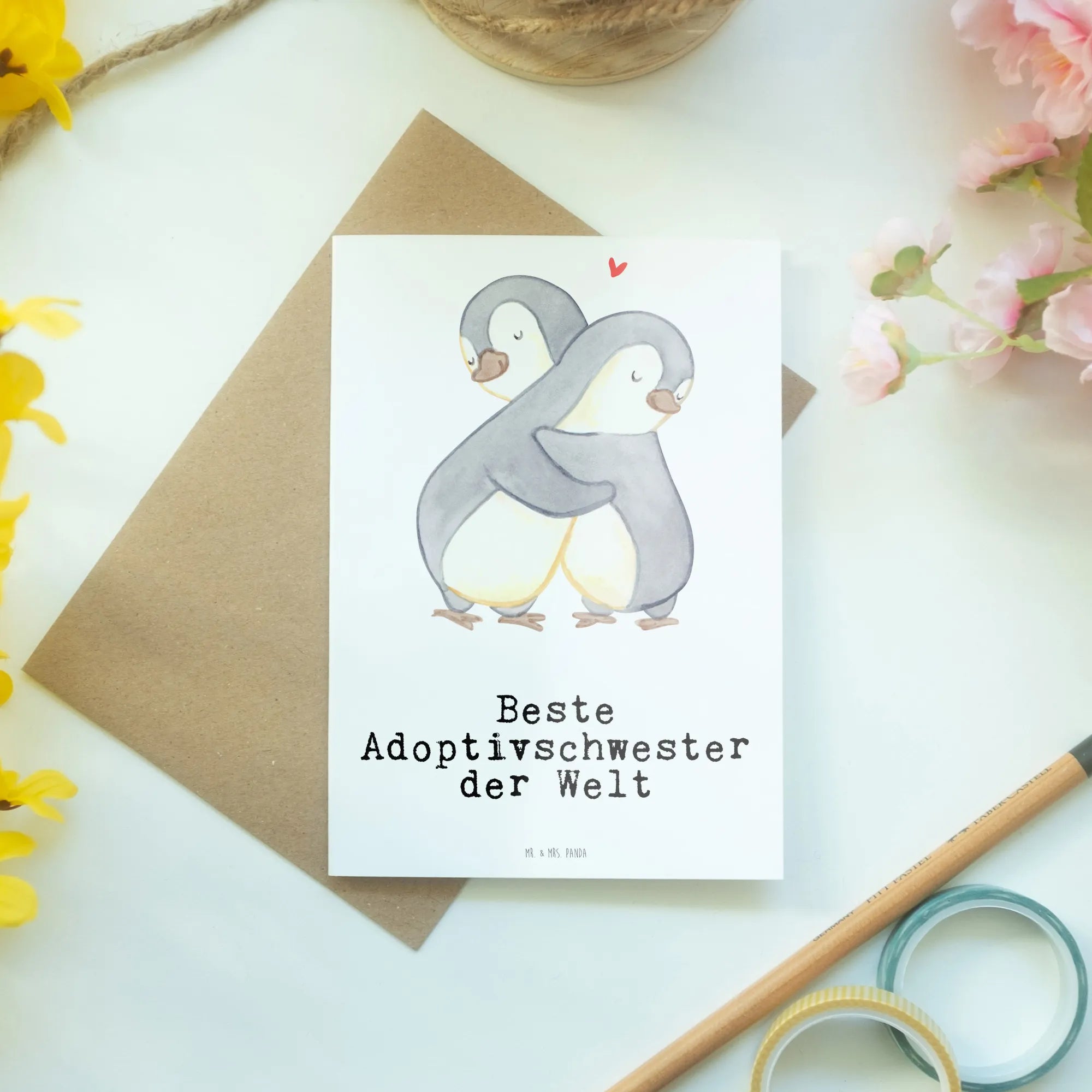 Grußkarte Pinguin Beste Adoptivschwester der Welt – Mr. & Mrs. Panda