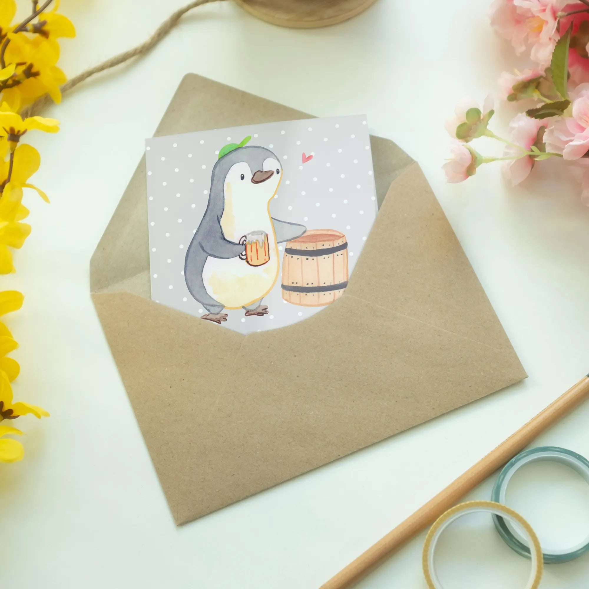 Diese liebevoll gestaltete Karte zeigt einen süßen Pinguin, der fröhlich ein Bier zapft – einfach perfekt für jeden, der gerne seine Freunde zum Lachen bringt oder einfach nur seine Wertschätzung ausdrücken möchte!