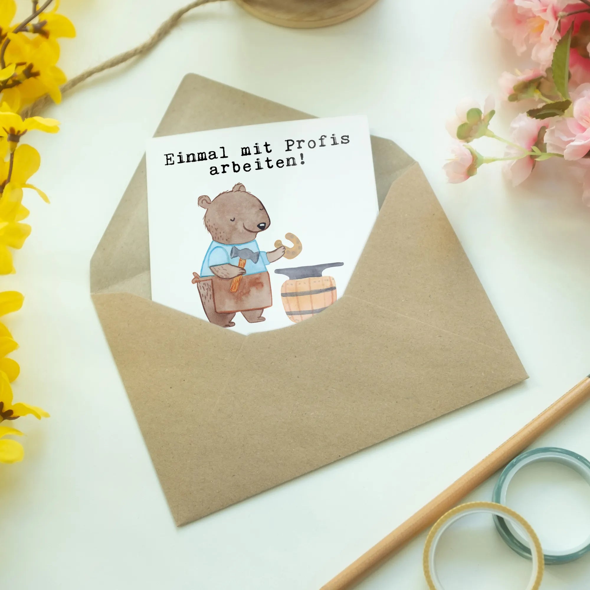 Die besondere Grußkarte "Schmied aus Leidenschaft" aus der Kollektion Berufe von Mr. & Mrs. Panda ist das perfekte Geschenk für alle, die das Handwerk lieben und schätzen. Diese wunderschöne Karte zeigt einen süßen Bären, der mit viel Hingabe am Amboss arbeitet. Ob zur Beförderung, zum Jubiläum oder einfach nur um Danke zu sagen – diese Karte ist eine wunderbare Möglichkeit, Deine Wertschätzung auszudrücken.