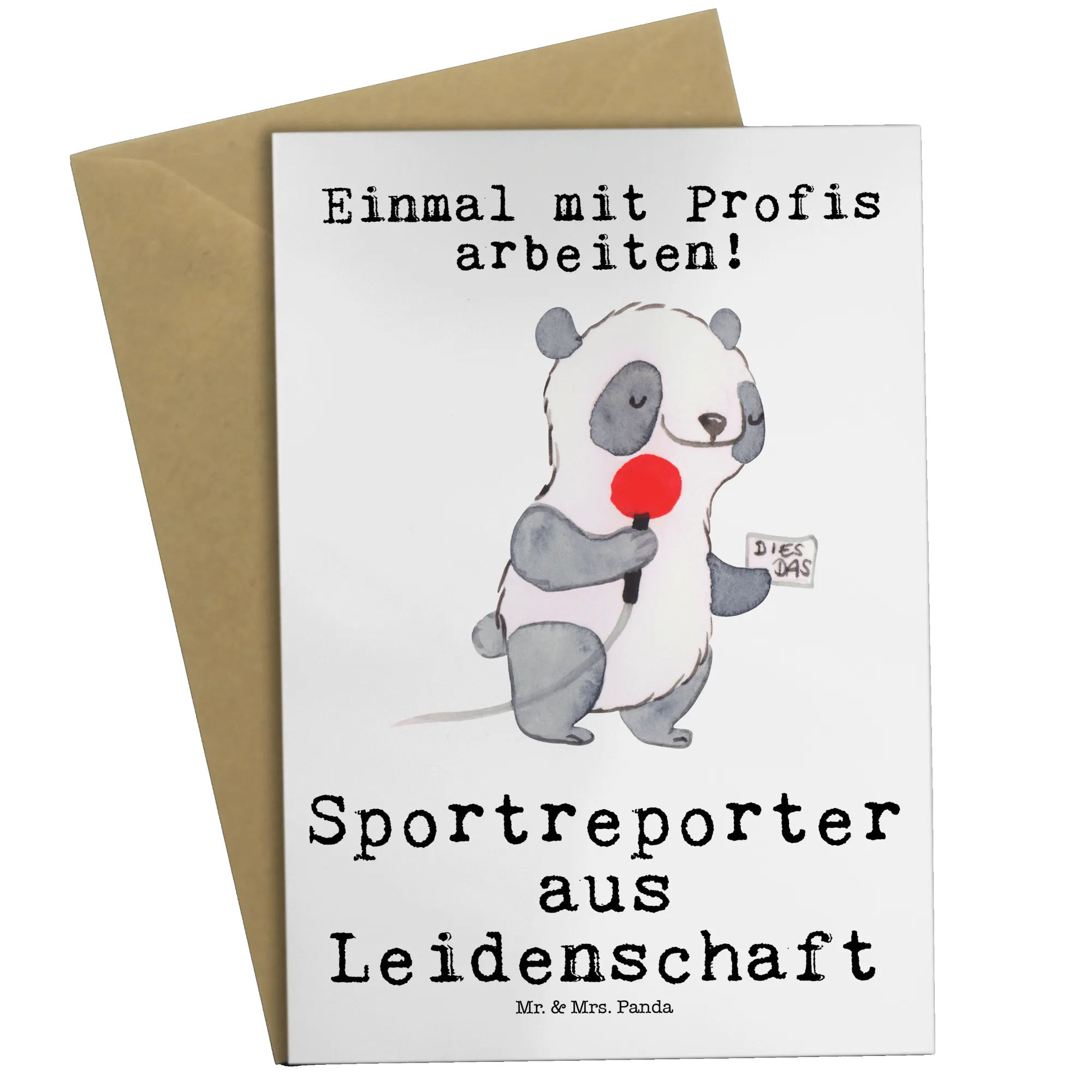 Die Grußkarte "Sportreporter aus Leidenschaft" von Mr. & Mrs. Panda ist die perfekte Möglichkeit, um deine Wertschätzung für all die sportlichen Heldentaten auszudrücken! Ob zur Beförderung, zum Jubiläum oder einfach so, diese Karte ist ideal für all jene, die sich in der Welt des Sports engagieren, sei es als Sportreporter oder in einer anderen Position in der Sportbranche.