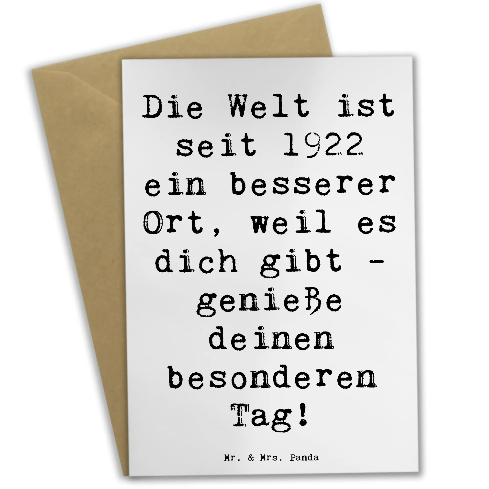 Die Grußkarte "1922 Geburtstag" von Mr. & Mrs. Panda ist das perfekte Geschenk für jeden, der in diesem Jahr seinen Geburtstag feiert. Egal, ob du deinem Freund, deiner Freundin, einem Familienmitglied oder einem Kollegen eine Freude machen möchtest, diese Karte wird garantiert für strahlende Augen sorgen! Mit dem liebevoll gestalteten Motto "Die Welt ist seit 1922 ein besserer Ort, weil es dich gibt - genieße deinen besonderen Tag!" verschenkst du nicht nur eine Karte, sondern auch eine kleine Portion Glück.